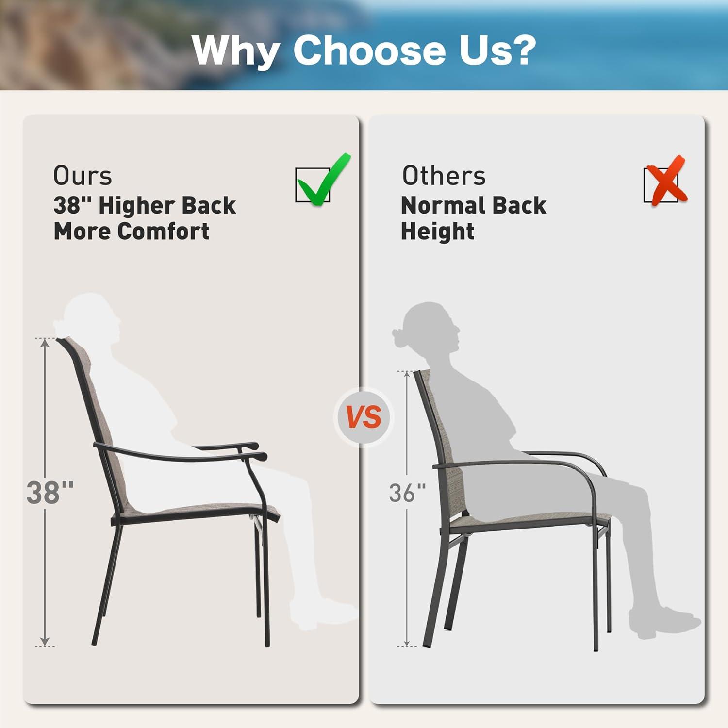 - manual adjustments to keep chairs level on slightly uneven patios.