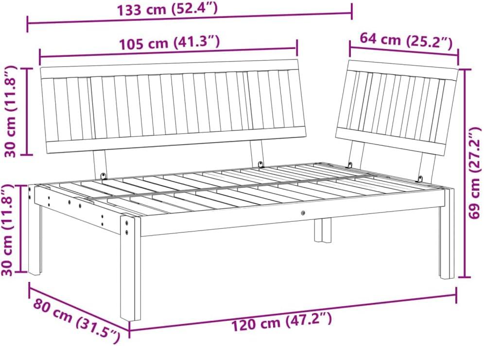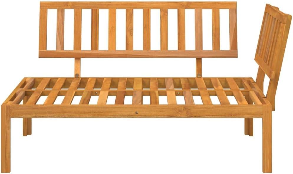 Set up in a sunlit corner of your living room, you promptly notice the low, horizontal stance of the Patio Pallet Corner Sofa Solid Wood Acacia Sturdy Frame Plush Upholstery Furniture Set for a Living Room.At roughly 52.4″ x 36.2″ with an 11.8″ seat height, it feels grounded and broad rather than tall, the slatted acacia planks giving it an architectural, chunky presence. As you brush a hand over the oil-finished timber the dense grain and solid weight become obvious, and the visible joins and modular seams read as practical and straightforward. The modest backrest changes the profile and the absence of cushions leaves the pallet surface visually raw, inviting you to imagine how it sits in everyday use.