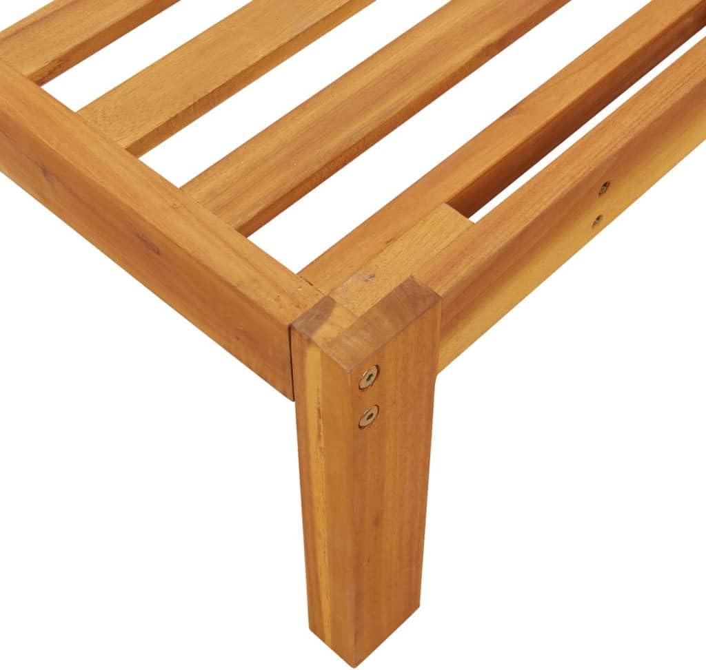 | Primary frame | Solid acacia boards, slatted layout, reinforced rails and cross-members |