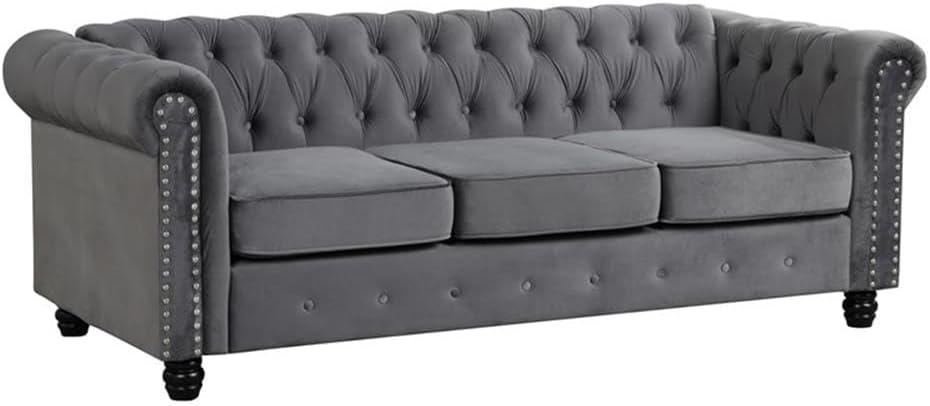 Living with the Pemberly Row Modern Sofa Loveseat Velvet Fabric Living Room Furniture Set-Gray, you notice the way its edges soften and the pile subtly changes as days pass. in daily routines it slides into places of use — a surface for a folded blanket, the spot where you pause with a book, the low point where cushions accept the shape of a family that moves around them. The velvet picks up faint scuffs and lighter paths where hands and sunlight meet, and the seats give in reliable little ways so sitting becomes integrated into regular household rhythms. After a while it simply rests and stays.