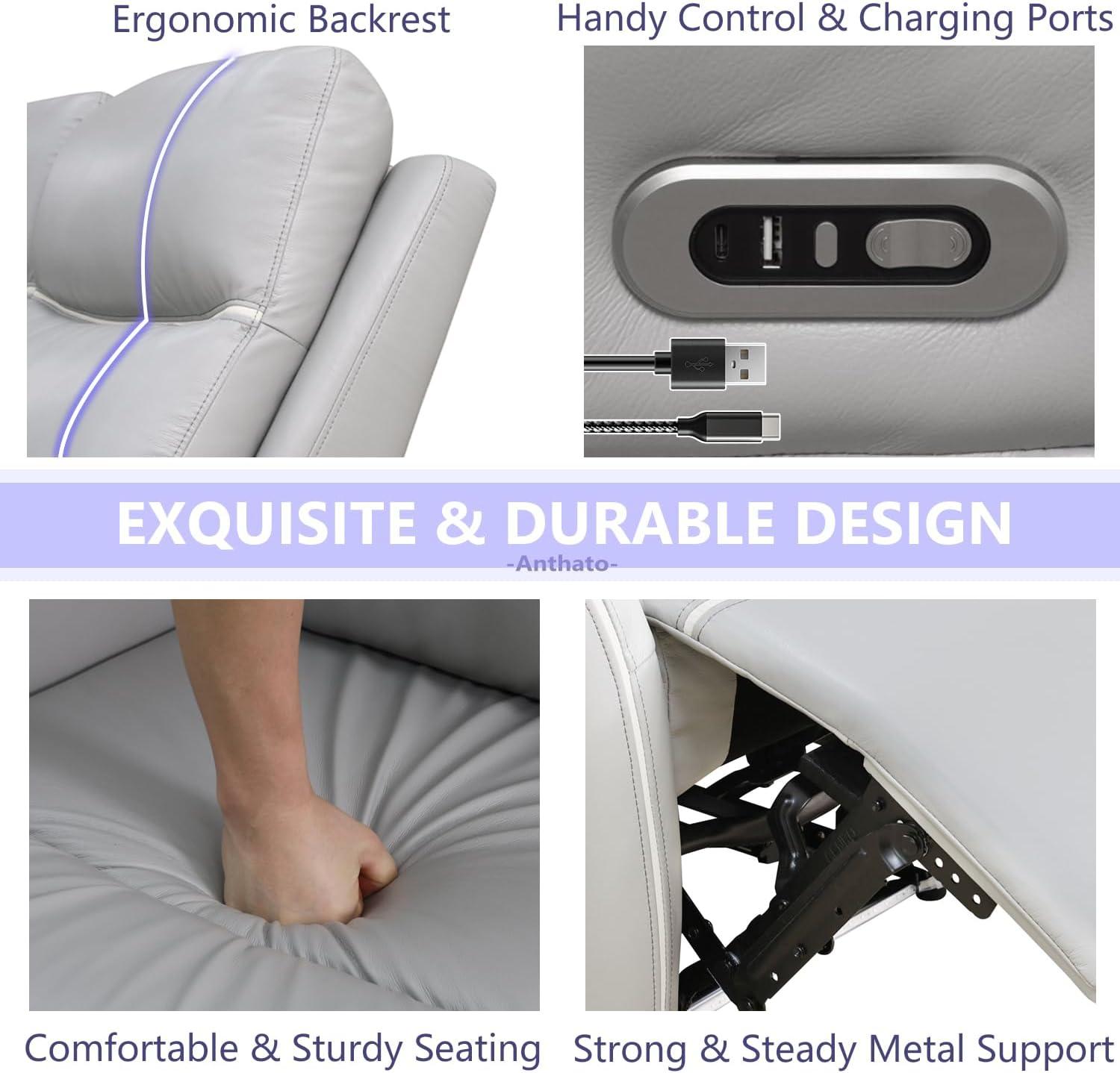 as we wrap up our review of the Anthato Power Recliner Sofa Set, it’s clear that this living room duo perfectly marries modern technology with stylish comfort. From the sleek light grey breathing leather that brings a touch of luxury, to the built-in USB charging ports and ambient blue LED lighting that enhance your home theater or office experience, this set stands out as a smart investment for anyone seeking both practicality and elegance in their furniture.The durable build, easy assembly, and thoughtful reclining features show that comfort and convenience truly go hand in hand here.