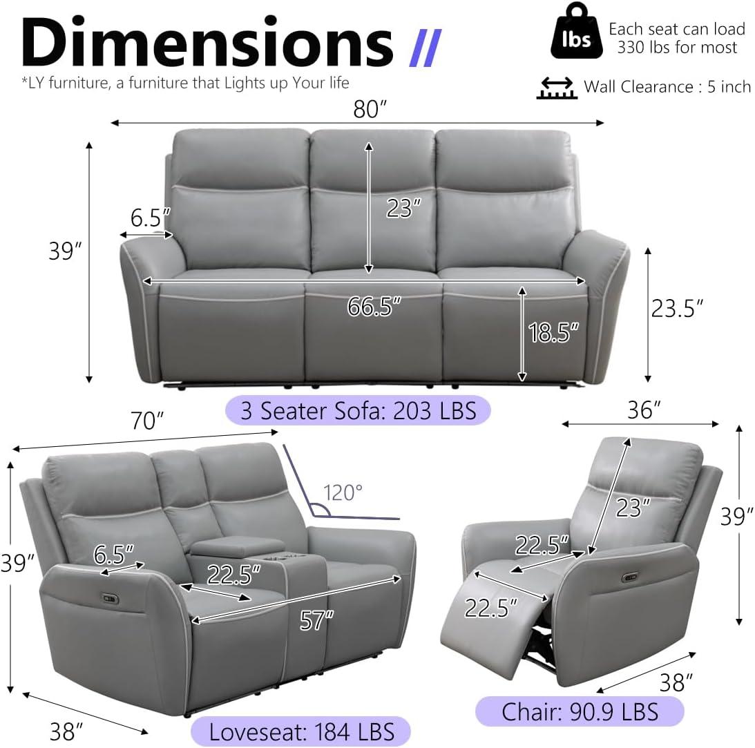 After spending time with this reclining set, we appreciate how it expertly balances luxury with functionality. The plush, breathable faux leather upholstery offers a sophisticated aesthetic that rivals genuine leather but without the upkeep hassles. With its smooth power recline mechanism, ergonomic support, and durable build, it’s clear this set is designed to provide comfort that lasts for years. The built-in USB ports and wireless charging table perfectly meet the tech needs of modern living spaces, while the subtle blue LED lighting adds a sleek ambiance ideal for home theaters or offices.