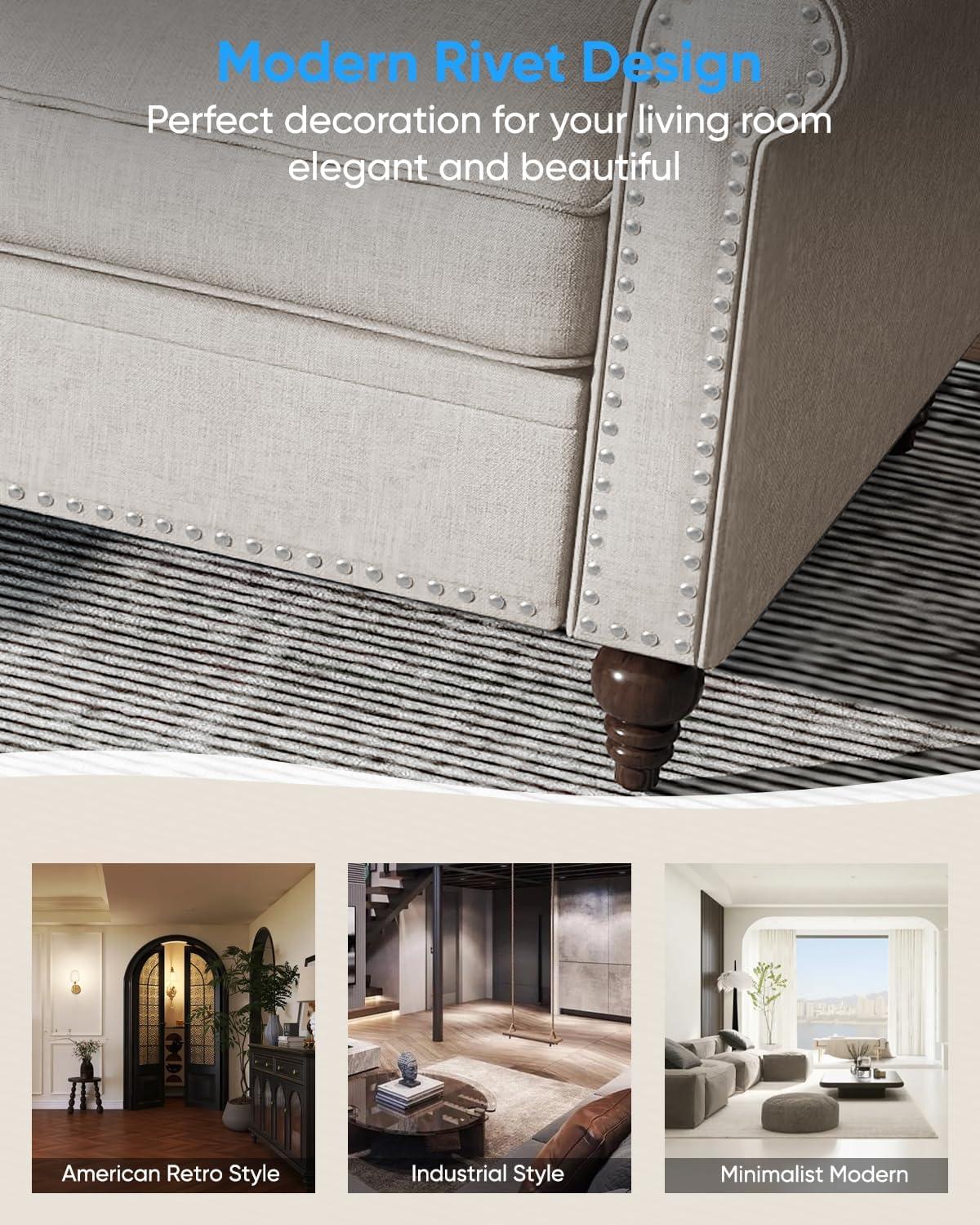 Each piece in this set impresses with its balance of softness and support. The 5-inch thick cushions feature a unique dual-layer filling of sponge and springs that cradles our bodies perfectly, helping distribute pressure evenly and relieving fatigue even after long hours of sitting. Whether lounging with family on the spacious sectional, sharing conversation on the loveseat, or sinking into the cozy accent armchair, we found the cushioning resilient-maintaining its plumpness and elasticity without sagging or indentations. The natural linen fabric adds another layer of comfort by being breathable and skin-friendly,keeping us cool during warmer days and comfortably warm when paired with throws in cooler seasons.