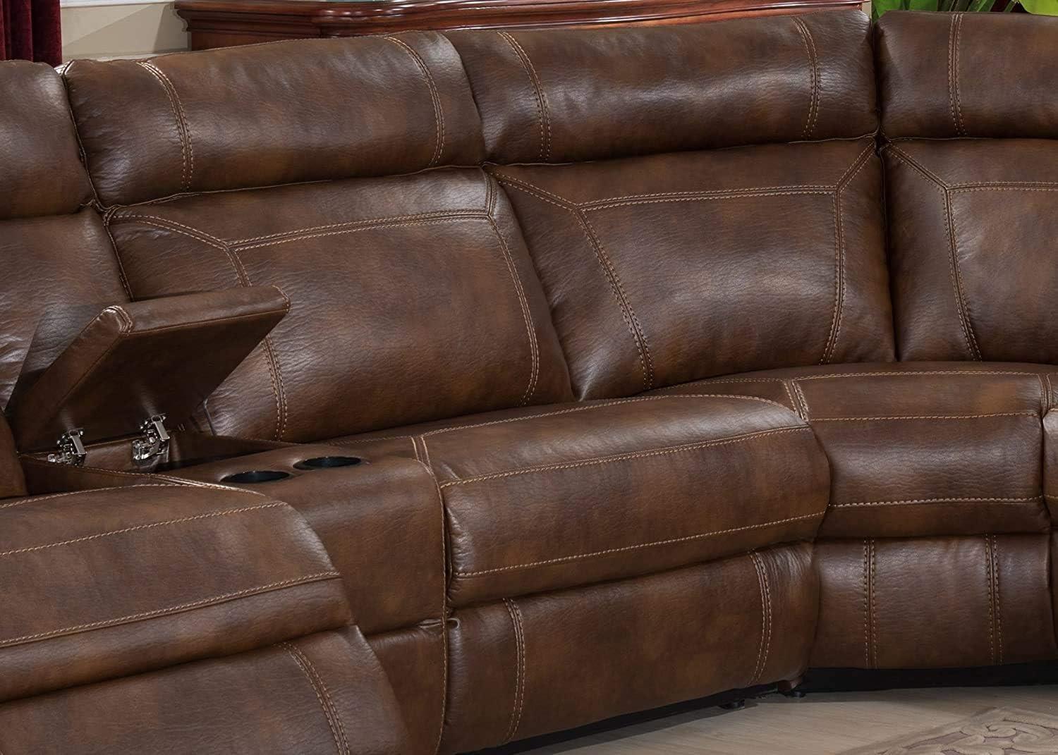 The sleek, modern lines of this sectional bring a refined yet inviting atmosphere to our living room.Its plush cushioning combined with ergonomic power recliners adds an element of luxury without compromising on comfort, perfectly matching our contemporary aesthetic. The rich brown upholstery, made from a durable polyester blend, complements a variety of color palettes while providing a soft texture that invites relaxation. Beyond looks, the cleverly integrated storage console with dual cup holders ensures our space stays clutter-free, blending utility and style in perfect harmony.