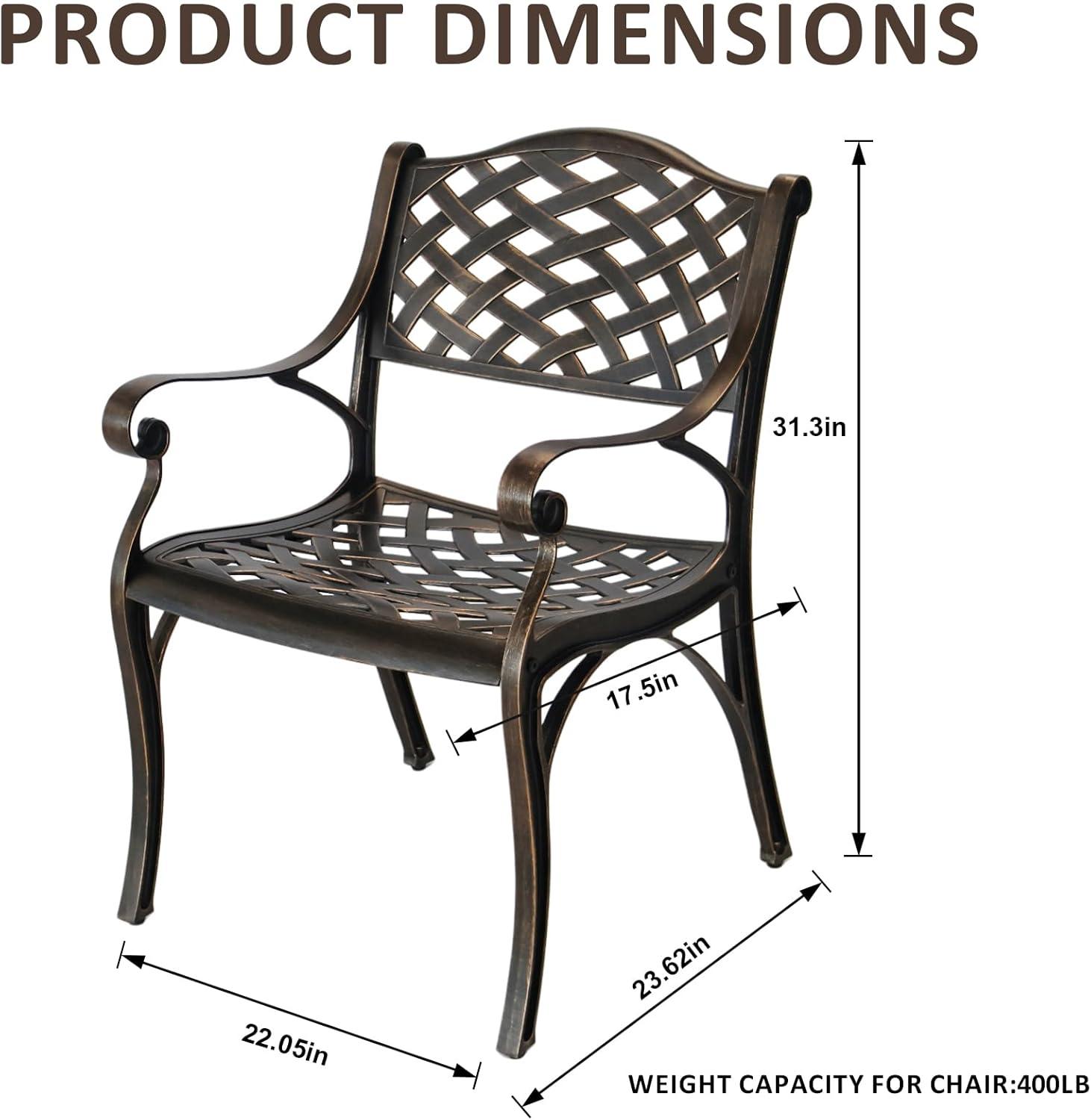 | Robust cast aluminum frame ensures long-lasting durability and rust resistance. | The set is relatively heavy, making it less portable for frequent moves. |
