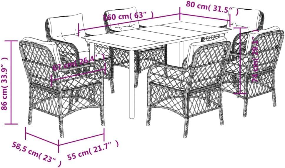 | Dimensions | Table: 63″ x 31.5″ x 29.1″ Chair: 23″ x 26.4″ x 33.9″ |