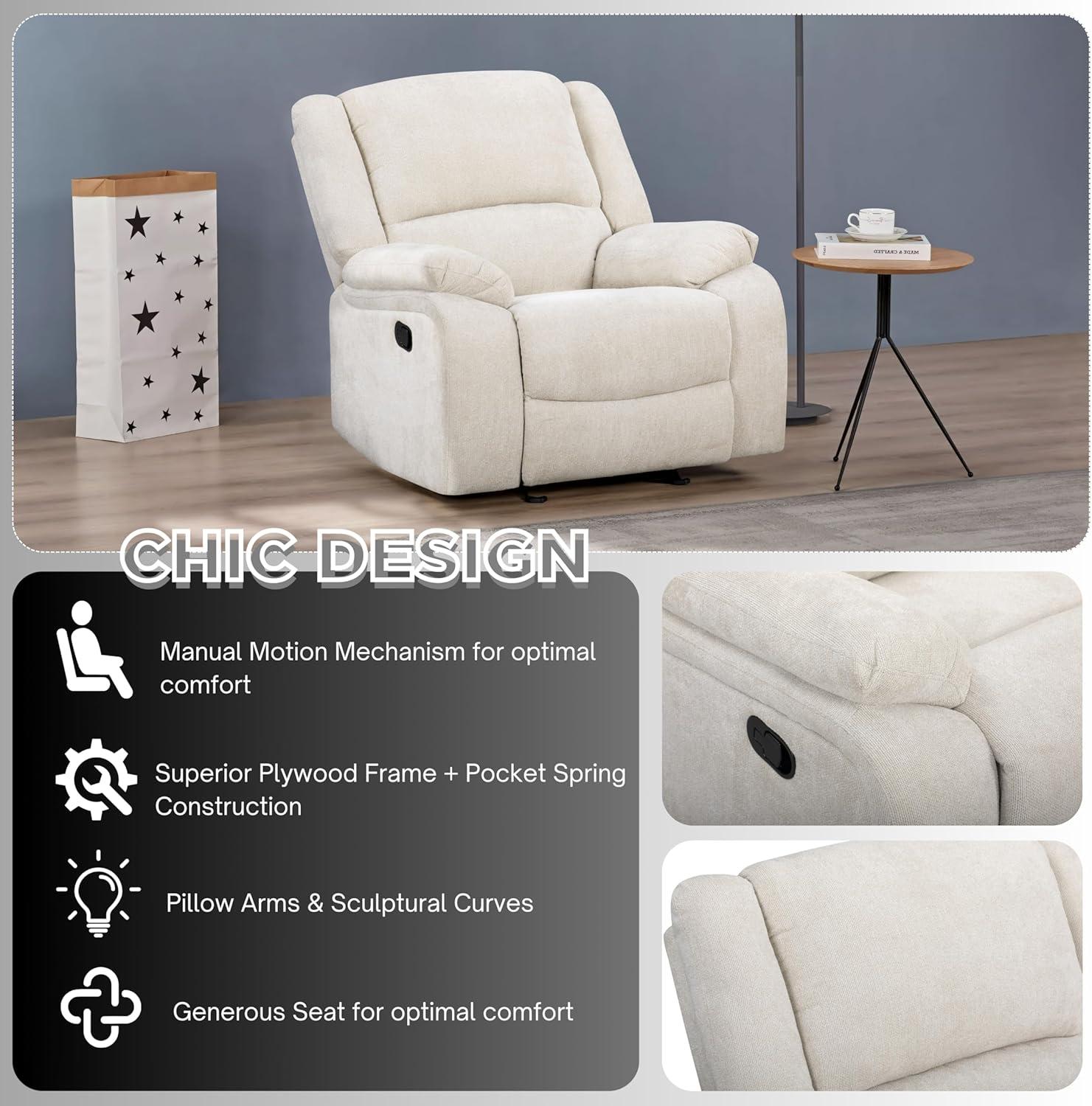 From the moment we experienced this set, the first thing that stood out was the exceptional craftsmanship and material choice. The reinforced hardwood frames provide a solid foundation, lending a reassuring sense of stability to every piece. The metal mechanisms that power the smooth manual recliners feel robust and well-constructed, allowing effortless reclining without any creaks or hesitation. Upholstered in Spencer fabric, the cushions balance plush comfort with durability, promising to maintain their shape even after prolonged use. We particularly appreciate the pocket springs integrated into the seating, which offer additional support and longevity – a detail often overlooked in similar products.