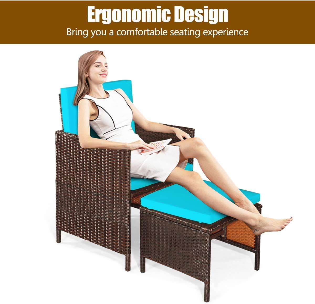Beyond comfort, the practical design details stand out.The ottomans are versatile, doubling as footrests or extra seating when friends drop by, enhancing the set’s functionality without sacrificing style. Together with the sturdy, hand-woven PE rattan and solid metal frames, the cushions add a vibrant splash of turquoise that elevates any outdoor space. Here’s a quick glance at what makes these cushions special: