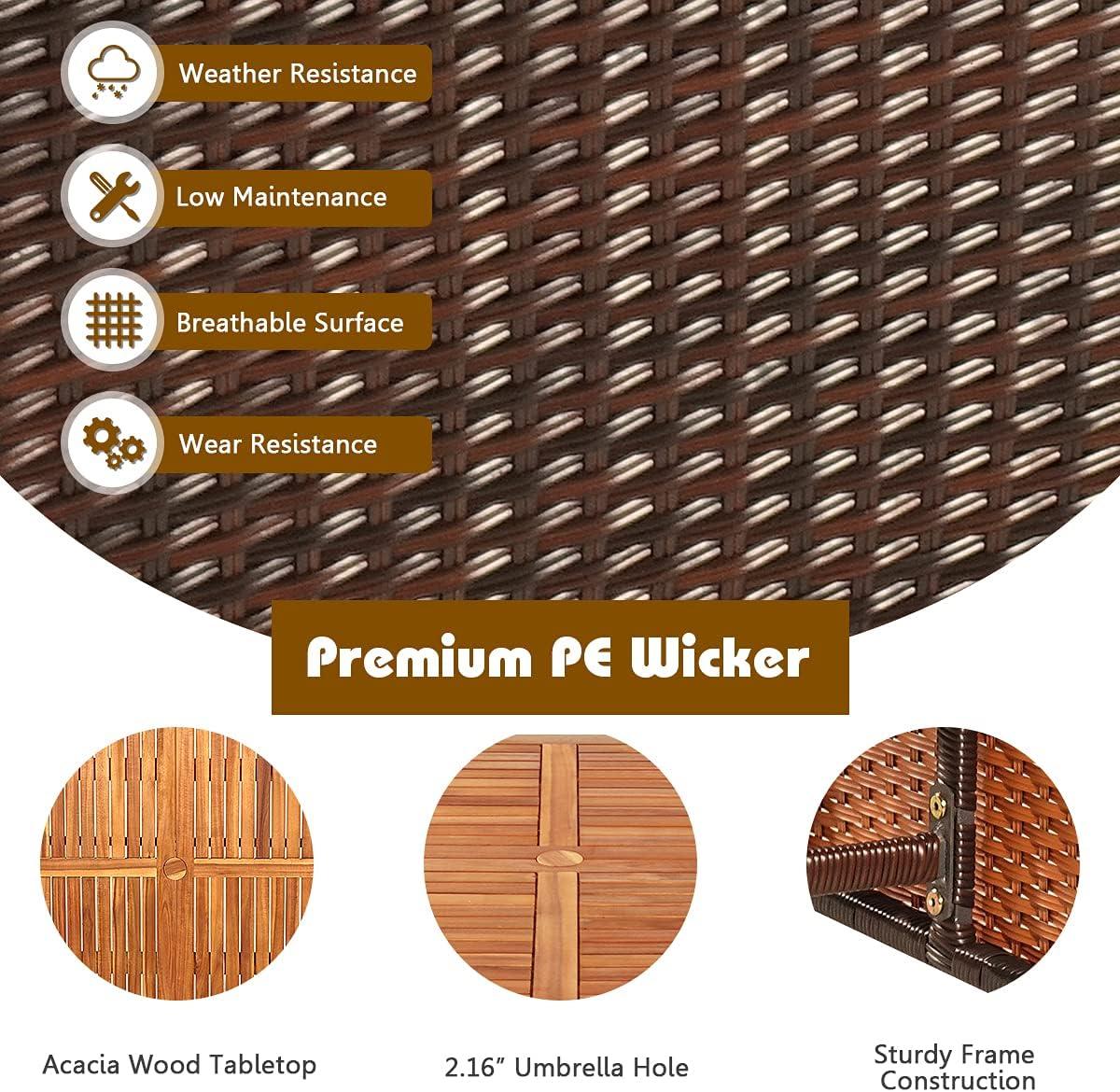 balancing functionality with style,this outdoor dining set impresses us with its thoughtful design and durable materials. The combination of a solid acacia wood tabletop and hand-woven PE rattan wrapped metal frames ensures longevity while remaining visually appealing. Its spacious 43.5″ table comfortably accommodates family meals or poolside gatherings, and the integrated umbrella hole makes shading effortless-an essential feature for sunny days. The set’s multi-use ottomans provide versatile seating or footrests that tuck neatly away for a clutter-free look, maximizing your outdoor space without sacrificing comfort.