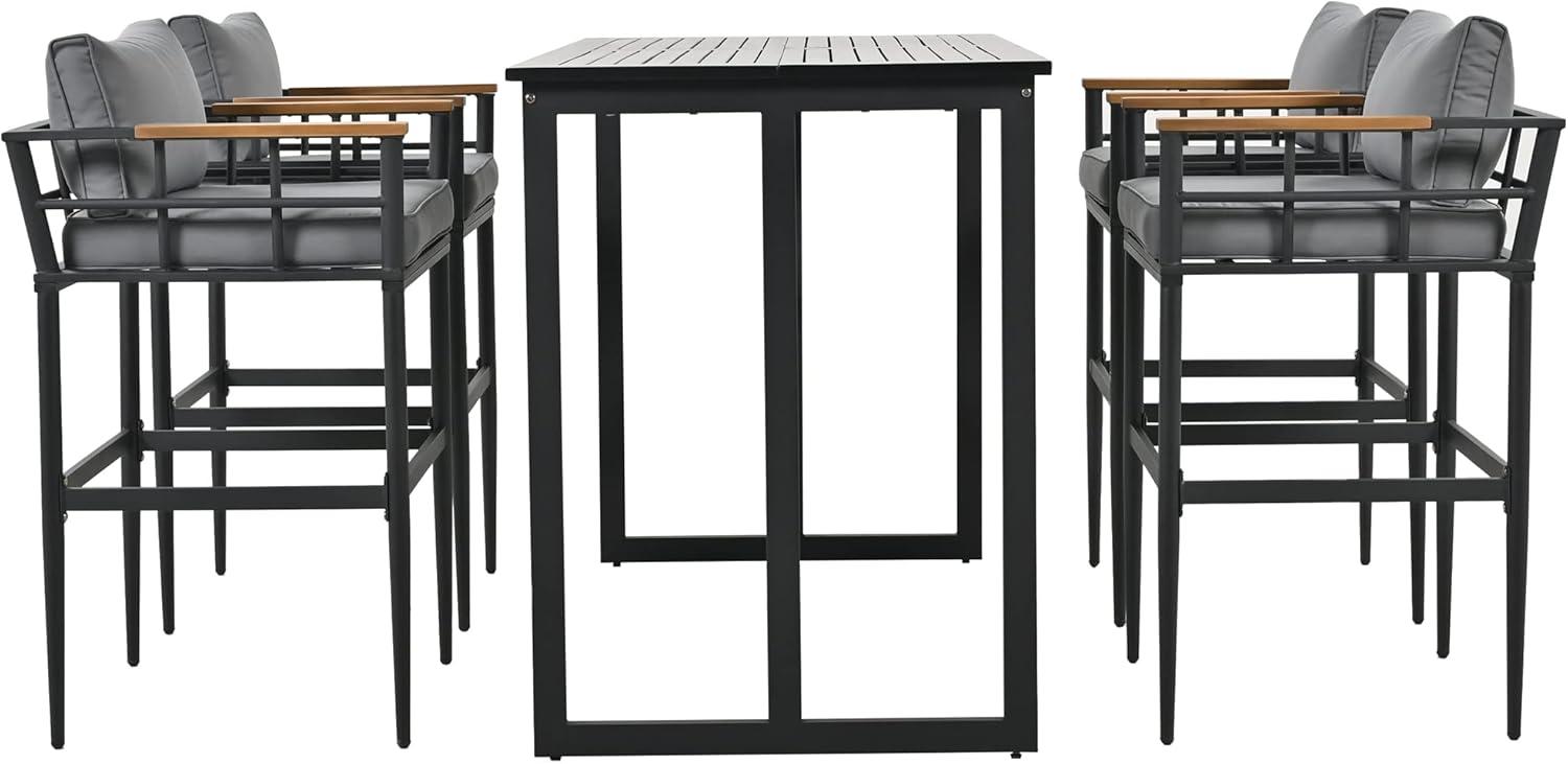 Initial impressions—clean lines, a sturdy frame, and the idea that maintenance will be minimal—carry into everyday use, but they arrive with small caveats.The steel structure usually feels solid under normal loads, yet repeated shifting of chairs across a patio can reveal tiny flexes at joints and the occasional need to re-tighten fasteners. Acacia armrests present as warm and tactile in use; left exposed to sun and rain they tend to pick up a slightly dulled tone and the surface shows light watermarks where spills sit for a while. Cushions and fabrics settle in the first few weeks of use, prompting routine smoothing and small adjustments that become part of normal handling.