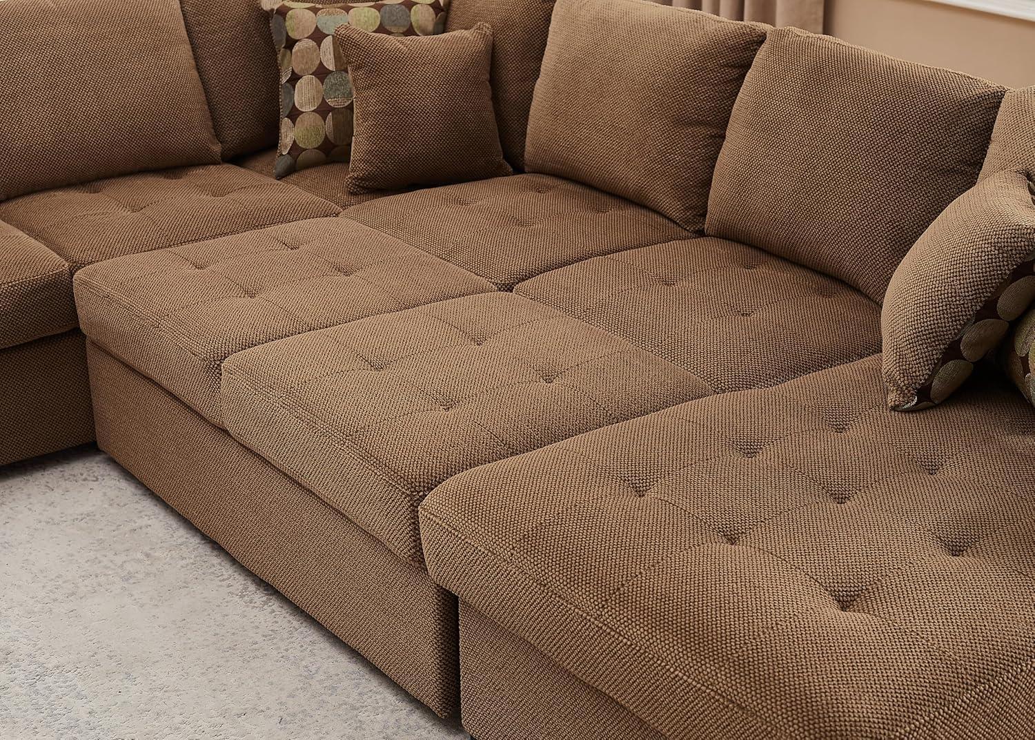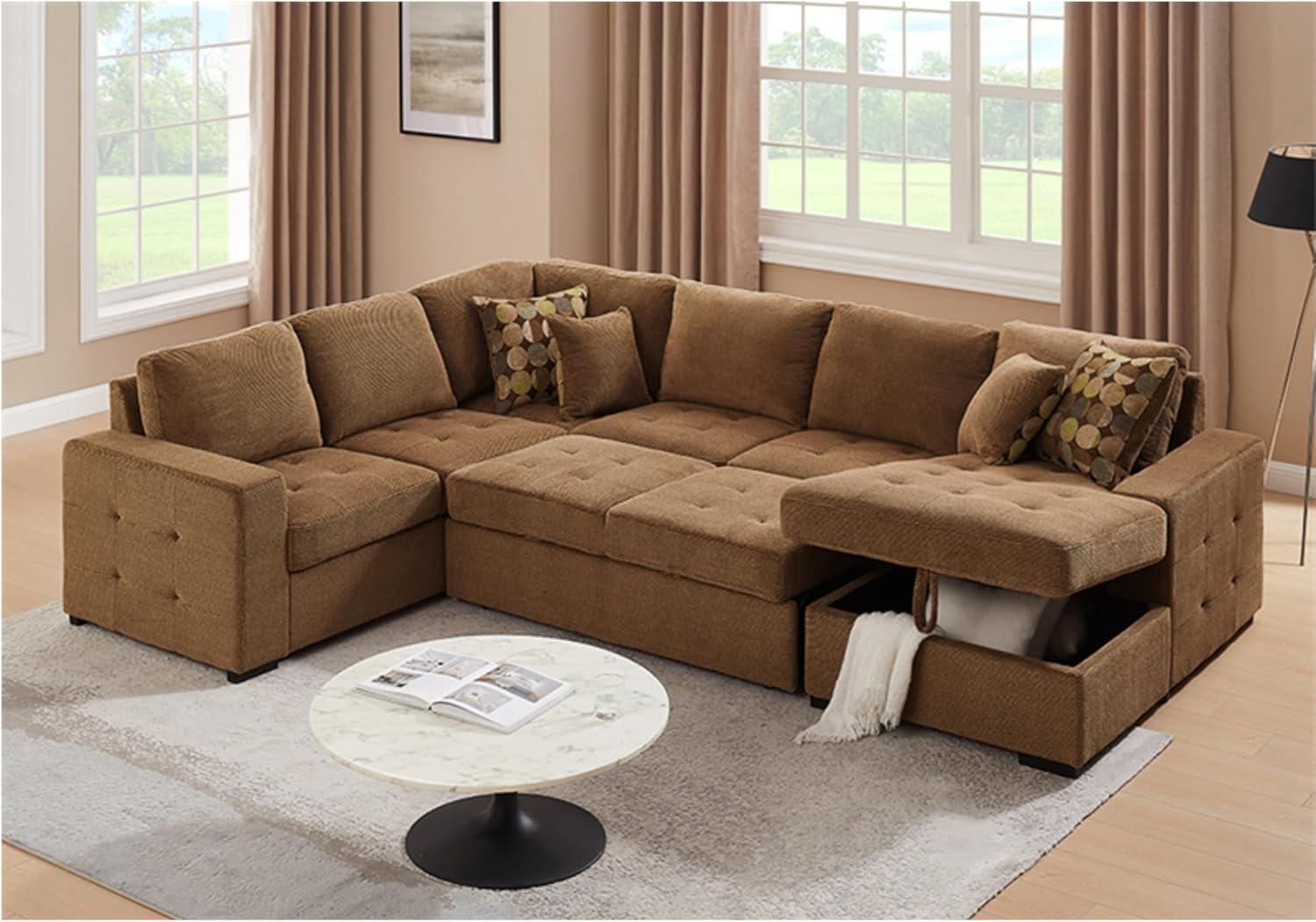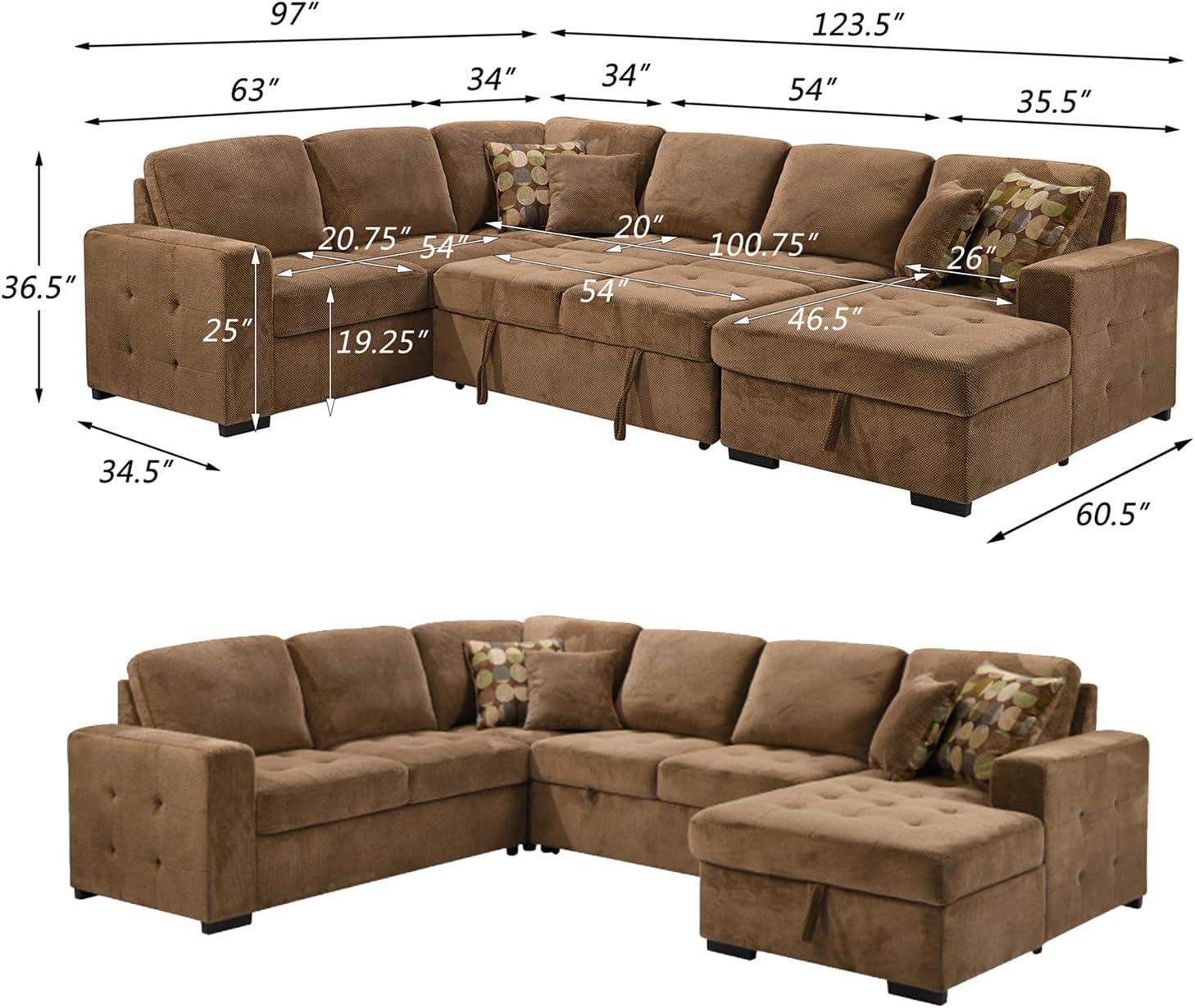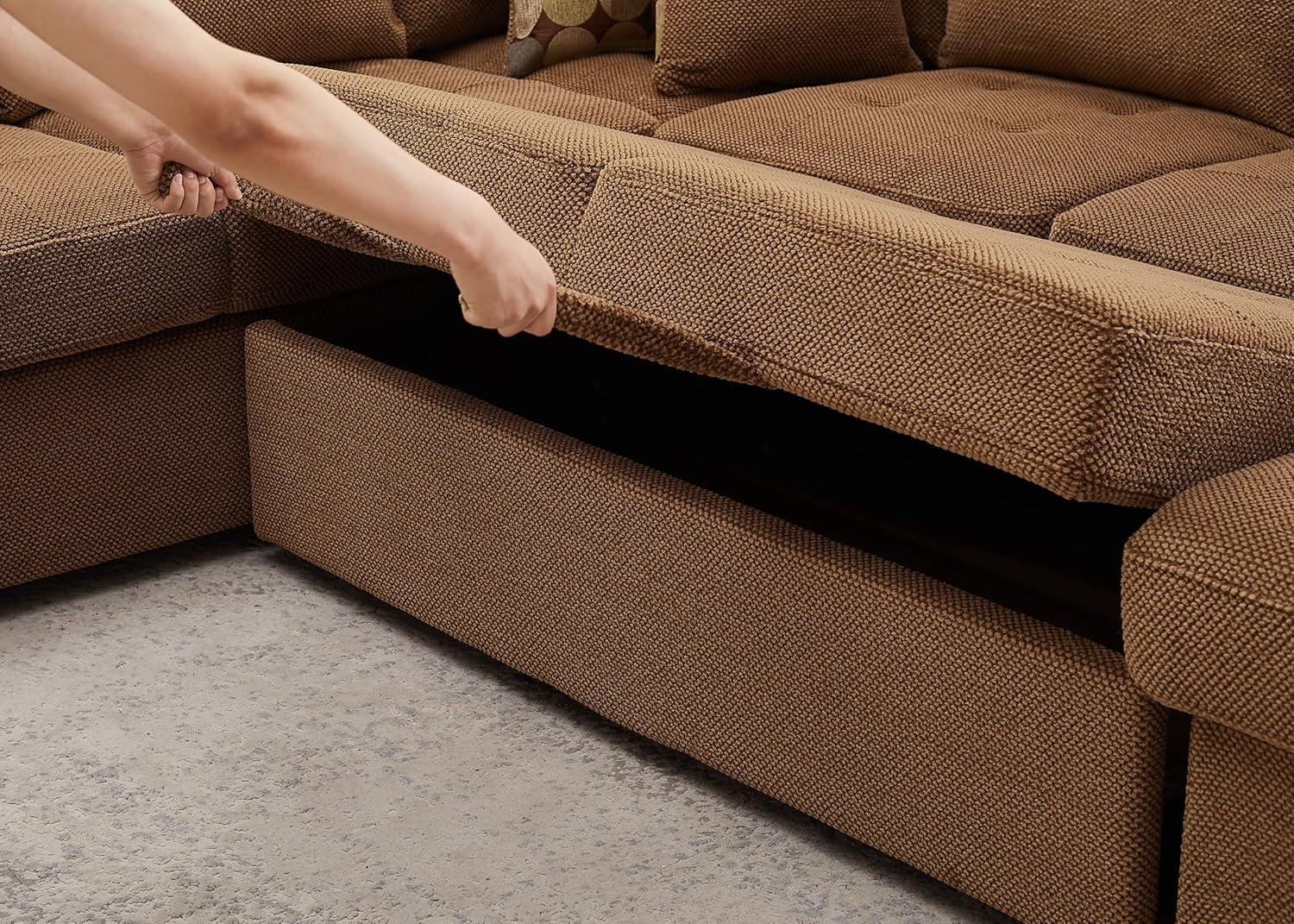 Living with the Sectional Sleeper Sofa Bed with Storage Chaise, U shape Oversized Sectional Couch with Pull Out Bed for Living Room Gray, 6 Seater Gray (Brown Patterned) feels less like an arrival and more like a slow, quiet arrival of habit. Over time you notice the chaise marking where feet land and where things get dropped in daily routines,the cushions loosening into the shape of afternoons and late evenings. Surfaces pick up faint impressions of use and the piece simply becomes part of the room’s rhythms, present in the small, repeated moments of ordinary life. It stays.