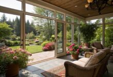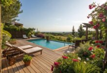 Incorporating wooden fixtures such as benches or decking enhances comfort and an earthy ambiance. My wooden platform is my favorite starting place for morning flow, grounding me in nature’s embrace.