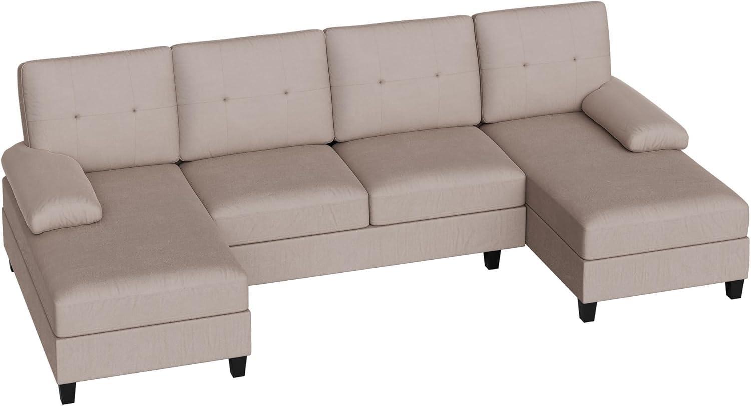 Living with its U‑shaped sweep teaches you small habits about the space: cushions soften where people favor, the double chaise collects a discarded blanket, and corners of the seating see more footsteps in regular household rhythms. The Shintenchi Sectional Couches for Living Room, 4 Seat Sofa Set U-Shaped Couch with Double Chaise, Modern Living Room Furniture Sets with Linen Fabric, Beige takes that quiet wear and makes it part of the fabric of the room, the linen showing gentle marks of everyday life rather than anything abrupt. You notice comfort changing through the day — a firmer morning, an easier evening — and how the piece settles into how the room is used in daily routines. Over time you stop paying attention to it and it simply becomes part of the room.