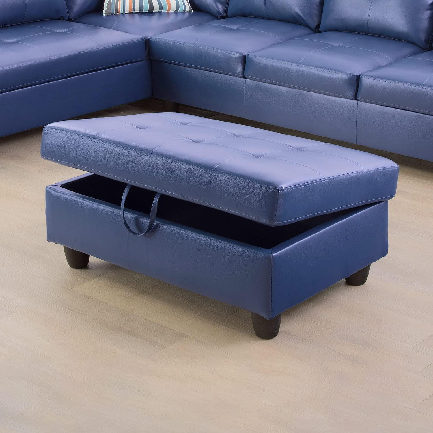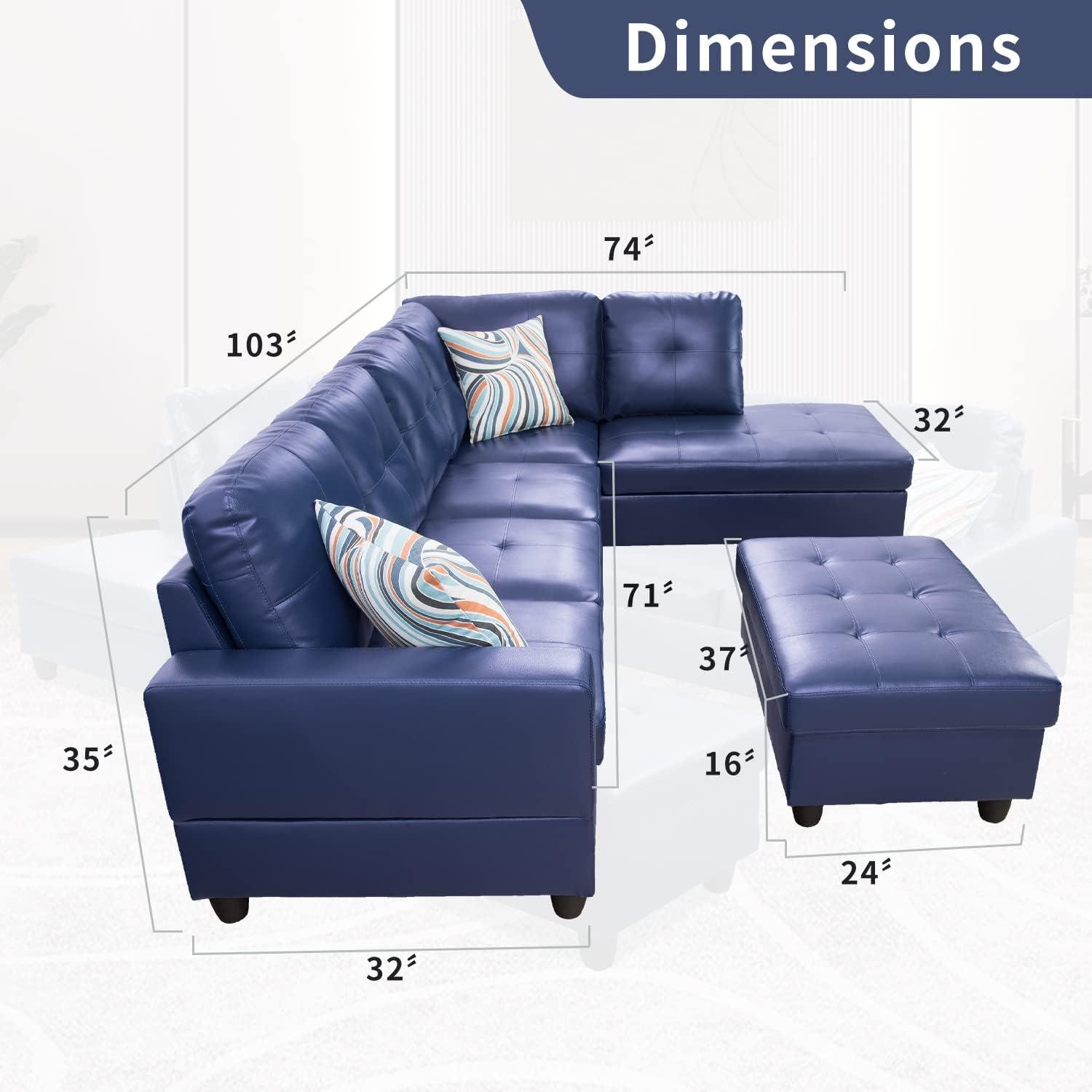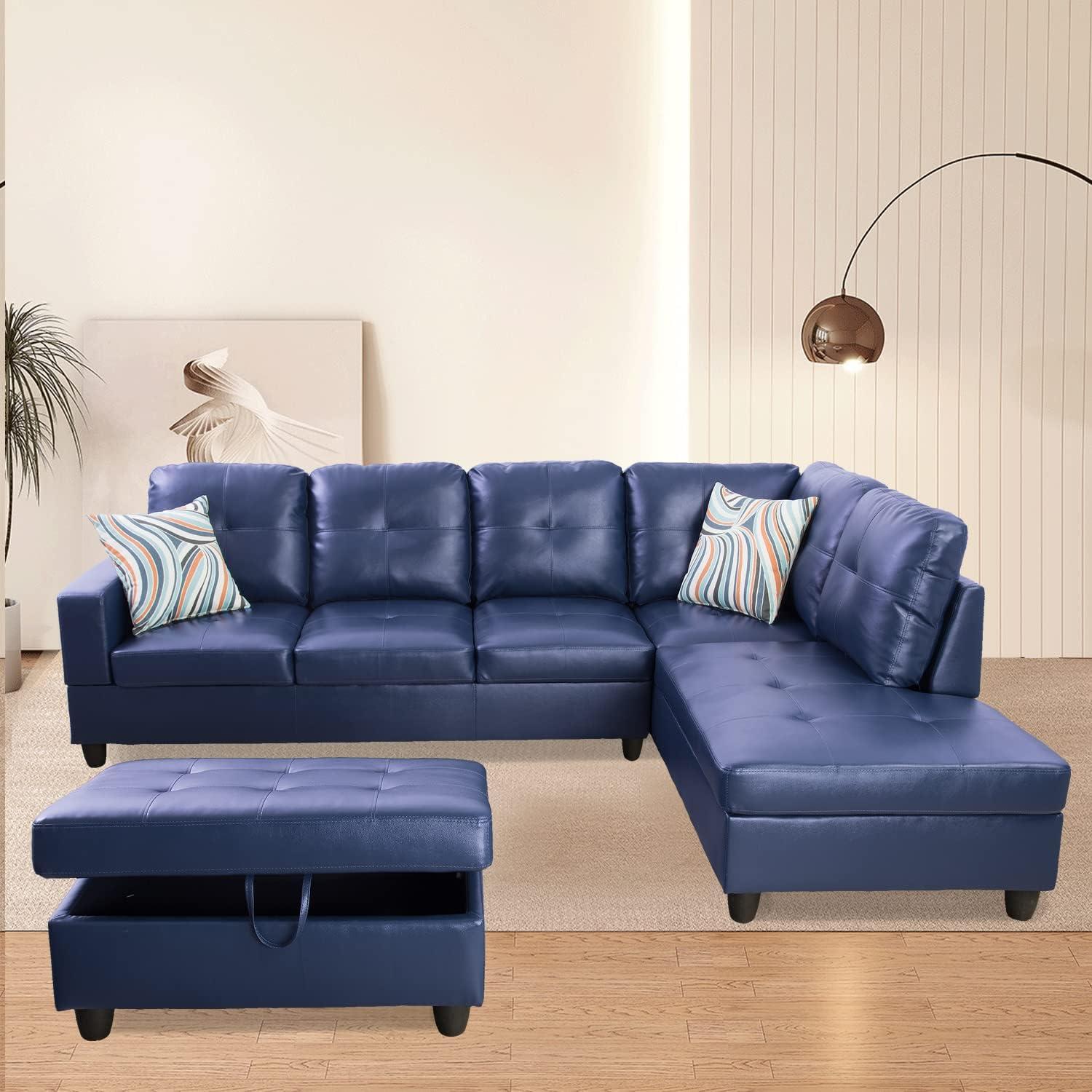 Over time, living with the Blue leather Sectional Couch for living Room Set, Sectional Sofa L Shape Couch with Storage Ottoman/Blue Faux Leather/Facing Right Chaise, you notice how it claims certain habits of the day: the chaise gathers morning light and the ottoman becomes a place for the bits you drop during the evening. The cushions give a little where you sit most and the faux leather develops soft creases and the occasional scuff as the surface wears in regular use. As the room is used, it quietly shapes how space is occupied and how comfort shows up in daily routines. In regular household rhythms it becomes part of the room.