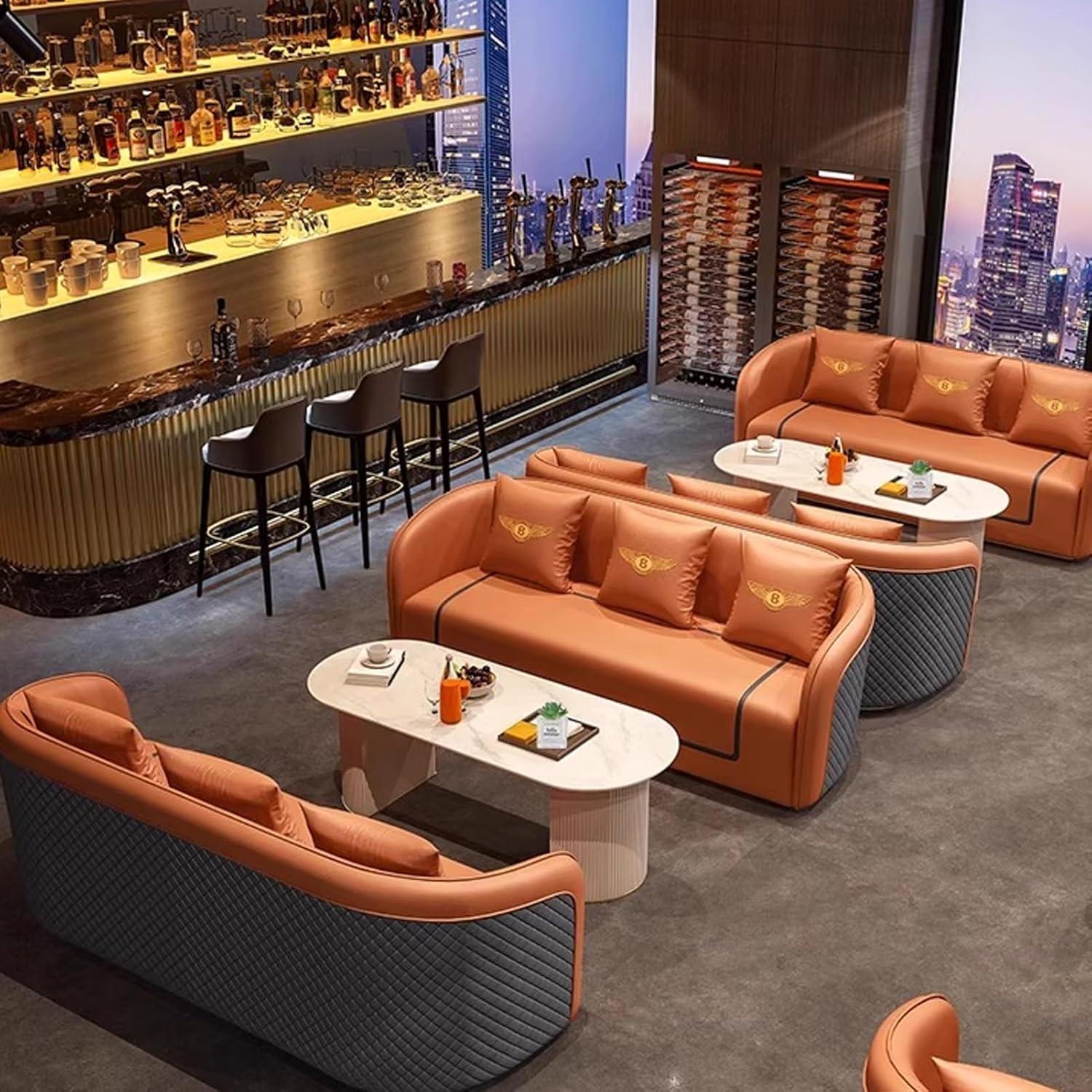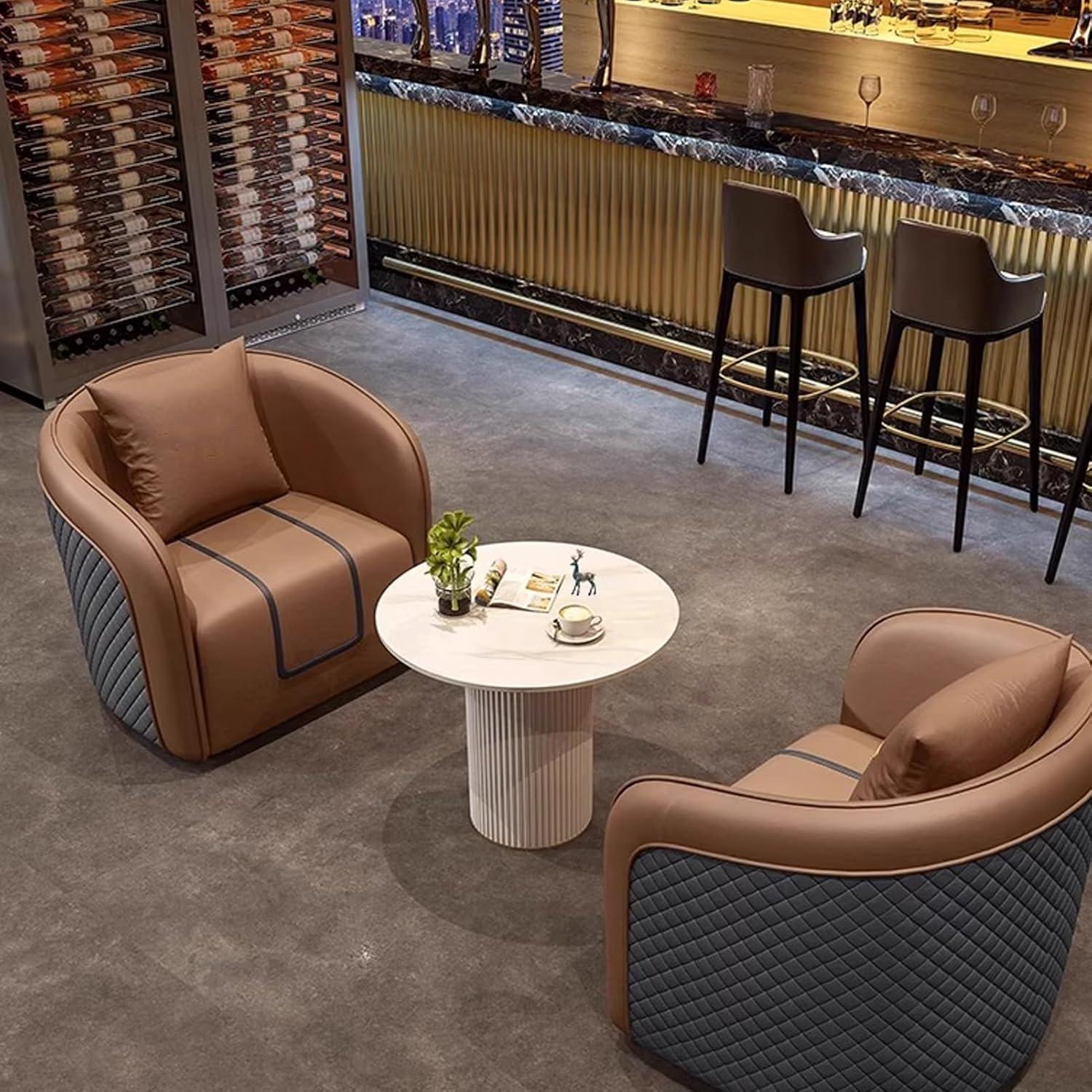 With the Single Sofas Set with Stone Slab Table, High-End leather Booth Sofas, Lounge Wrap-Around Deep Seat Couch, Living Room Furniture Set(D), you notice it easing into the room’s cadence over time rather than arriving with a sudden presence. Its wrap-around form quietly shapes how the space is used, and the deep seats develop a softer give in daily routines as bodies and evenings press into them. small marks on the leather and the stone—rings, tiny scratches, the gentle dulling of shine—become part of the surface language of regular household rhythms. After months of being part of your comings and goings,it simply stays.