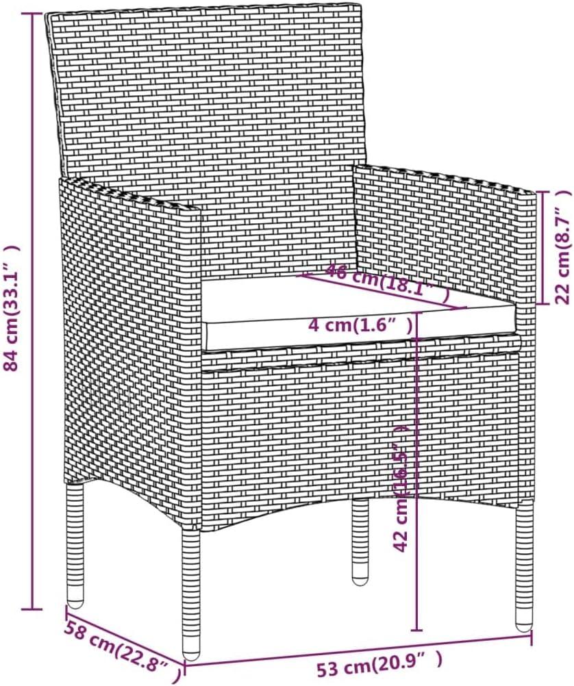 When you first see the set in place on your patio, your eye catches the contrast between the darker frame and the warmer woven surfaces. The chairs read as a compact cluster around the table; the glass tabletop picks up reflections of sky or string lights, breaking up the weave pattern beneath it. Cushions sit slightly proud of the chair backs at first glance, their seams and piped edges giving lines for your hand to follow if you reach out to smooth them. There’s a quiet, utilitarian outline to the silhouettes — nothing fussy, but not visually insubstantial either.