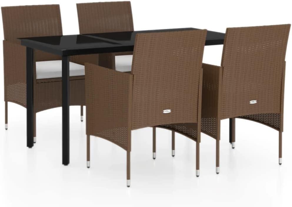 You notice, over time, the SKM 5 Piece Patio Dining Set with Cushions Brown and Black-93011026 finding its place in the flow of the patio, chairs nudged by habit and cushions smoothed where people tend to sit. In daily routines the comfort softens into familiarity and the surfaces gather the small marks of use that fit into how the space is used. as regular household rhythms unfold—coffee in the morning,quick dinners,an afternoon of reading—the set becomes part of that everyday presence rather than a thing apart. It stays.
