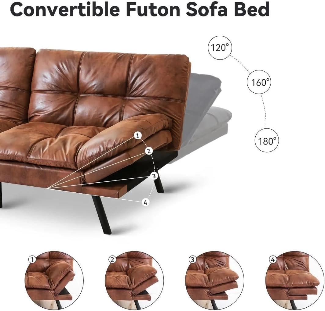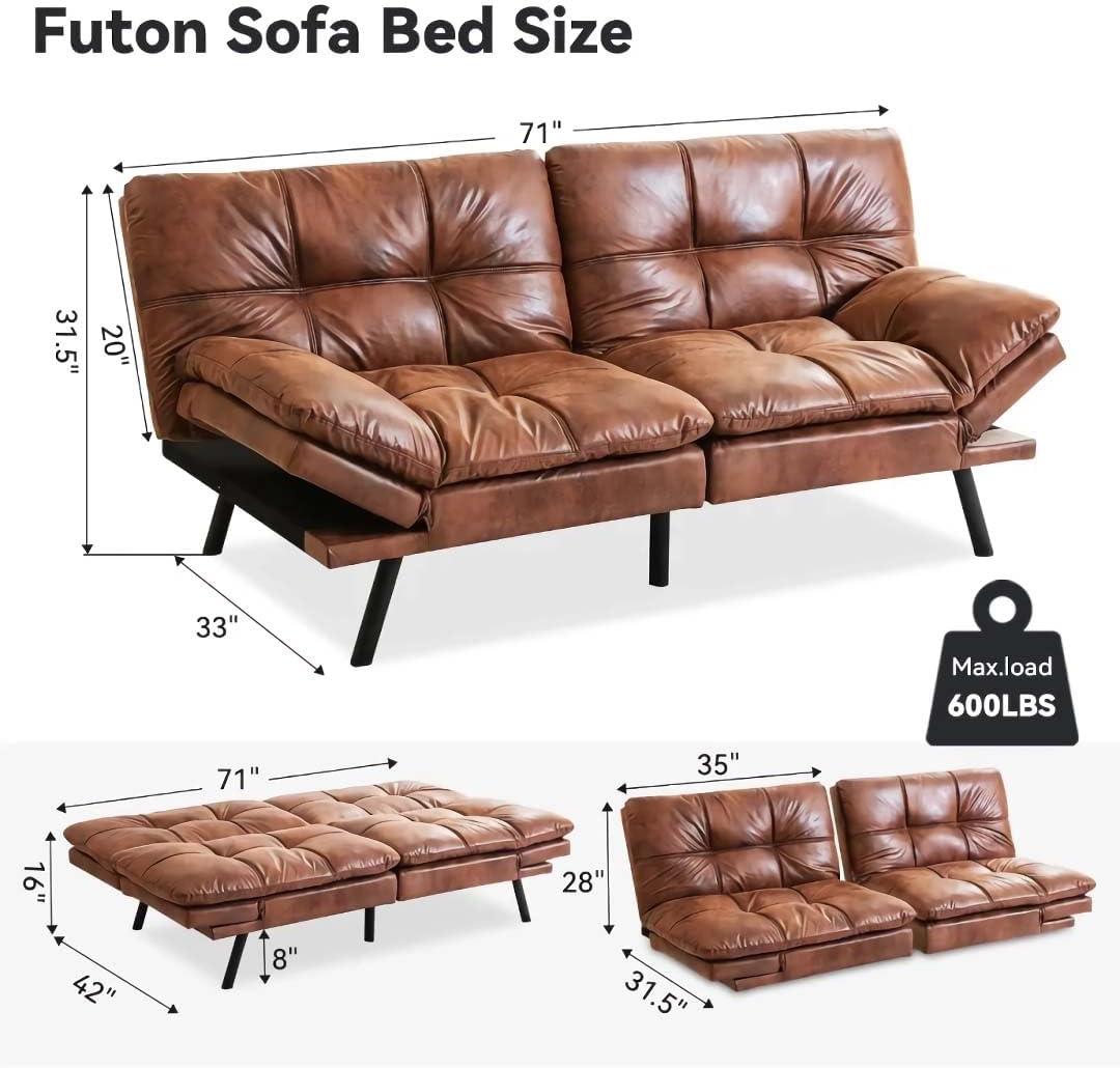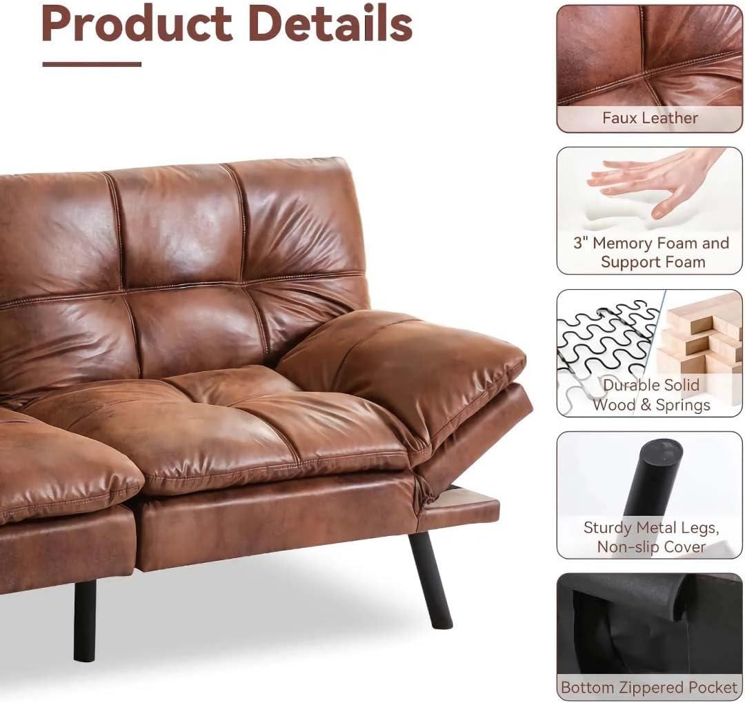 From our experience, this piece stands out as an excellent solution for anyone seeking versatility without compromising on style or comfort.Its smooth transition from loveseat to lounger and then to a full bed is effortless and practical, making it a perfect fit for compact living areas, offices, or dorm rooms. The plush memory foam layer paired with cotton padding truly enhances sleeping comfort by evenly distributing weight, while the premium faux leather upholstery adds a touch of elegance and impressively holds up against daily use. We appreciated how the classic brown tone complements various decors, seamlessly blending functionality with aesthetic appeal.