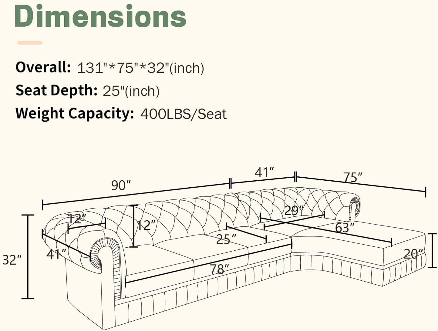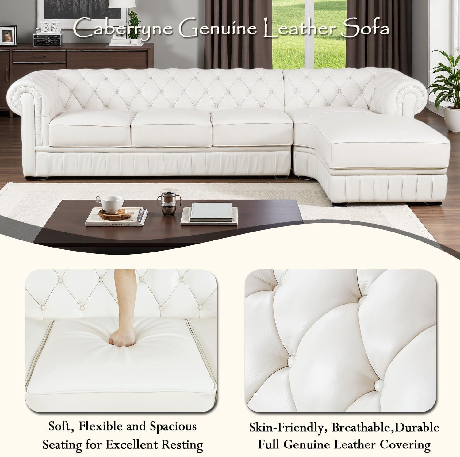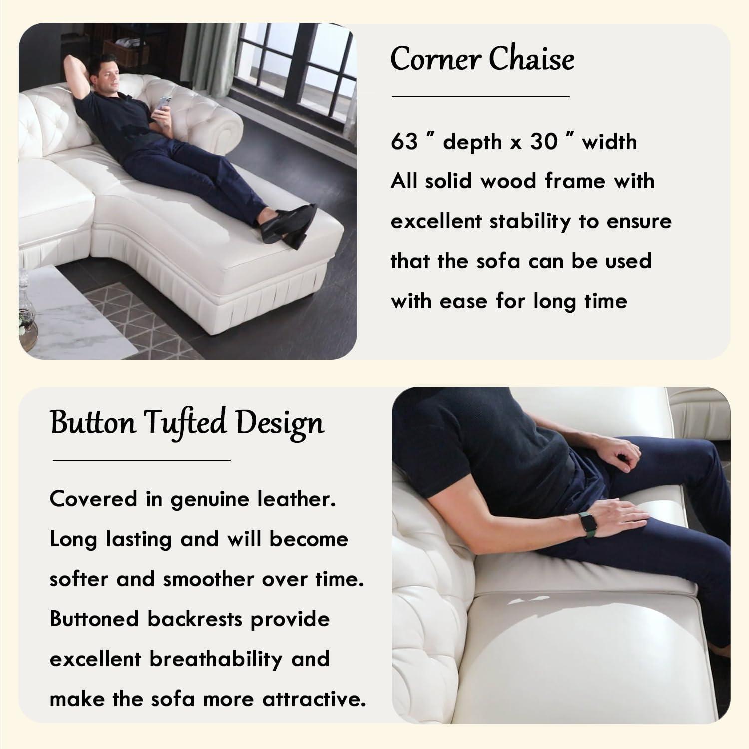 After spending considerable time evaluating this luxurious cream-colored leather sectional,we can confidently say it marries style with functionality. The classic Chesterfield design, enhanced by exquisite button tufting and pleated detailing, offers an elegant aesthetic that fits seamlessly into various decor themes-be it a cozy living room, upscale lounge, or a sophisticated office space. Beyond looks, the premium cowhide leather combined with high-density sponge cushioning ensures lasting comfort and durability.Its generous dimensions provide ample seating for five, supporting up to 2,000 lbs, making it a versatile option for families or gatherings.