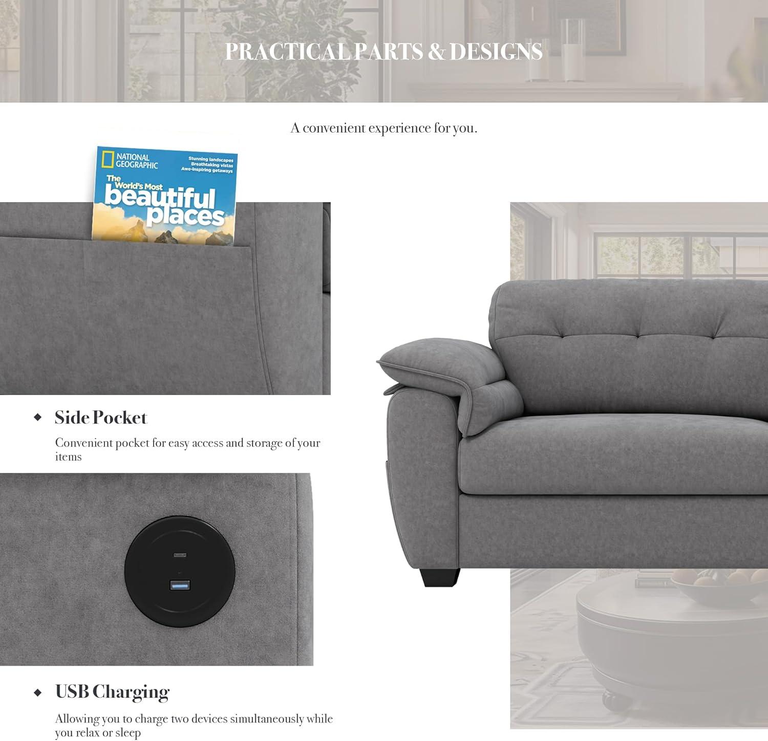 Adding to its multifunctionality, the integrated USB and type-C charging ports allow us to keep devices powered effortlessly while lounging or sleeping, which is a rare convenience in sleeper sofas. Maintenance is a breeze with removable, machine-washable covers and hidden cushions tucked inside the armrests-making the sofa perfect for busy lifestyles or shared spaces. This blend of style, comfort, and utility makes it a smart pick for anyone who values thoughtful design in multi-use furniture.