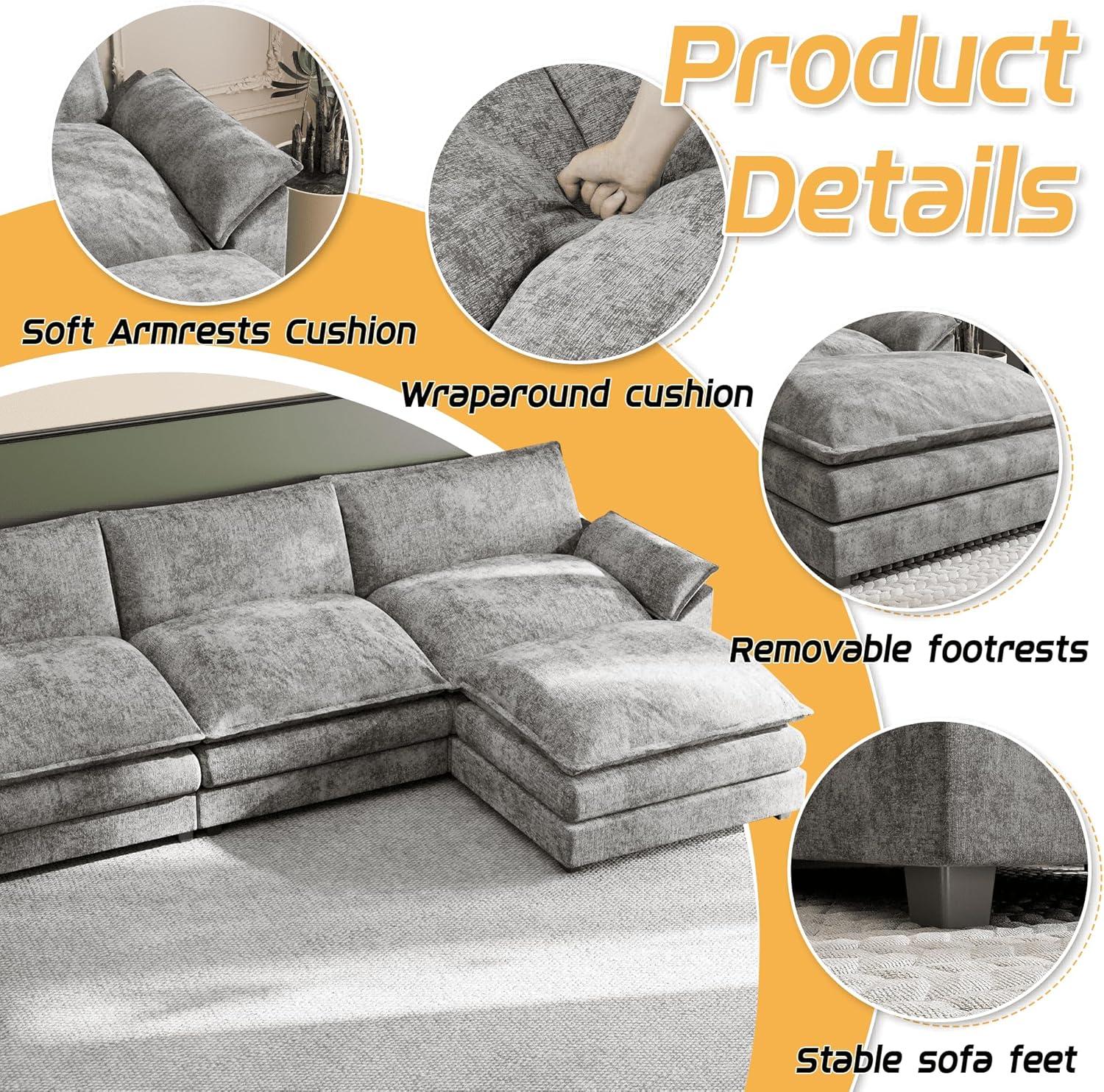 Getting acquainted with this modular sofa quickly revealed its thoughtful design aimed at comfort and versatility. The U-shaped configuration offers ample seating, ideal for family gatherings or casual lounging. Made from high-quality chenille fabric, the upholstery feels notably soft and skin-friendly, contributing to a cozy atmosphere that invites relaxation. One of the standout features is the high density sponges and supportive cushioning that strike a perfect balance between softness and structure, ensuring long-lasting comfort without sagging. Plus, the removable ottoman adds functional flair, allowing us to customize seating arrangements or extend legroom with ease.