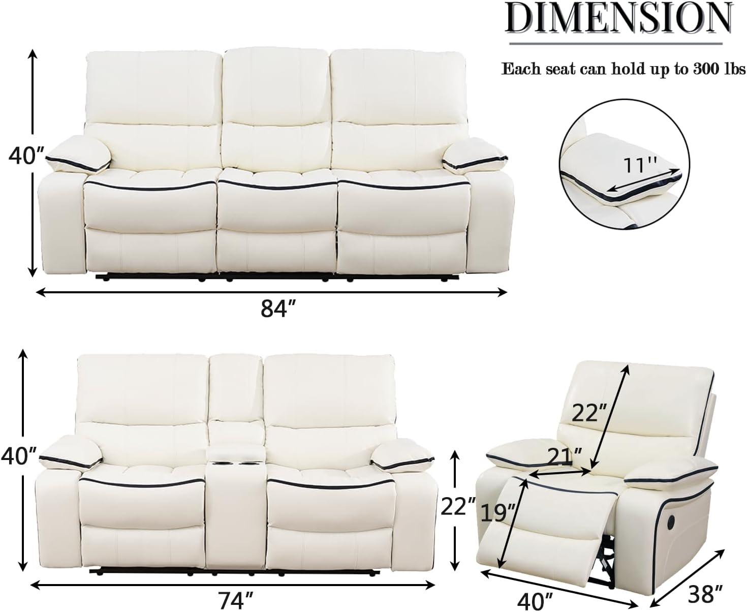 After extensively using this reclining sofa set, we appreciate its thoughtful blend of comfort, style, and practicality. The wall-hugger design is a standout feature, allowing placement just a few inches from the wall to maximize space without compromising on recline angles. Each seat supports up to 300 pounds and offers adjustable backrests and leg rests that smoothly transition from upright to full recline, making it ideal for diverse settings such as living rooms, home theaters, offices, or even RVs. The high-density memory foam cushioning provides lasting comfort, while the faux leather upholstery adds elegance and easy maintenance. Plus,integrated USB ports,cup holders,and a hidden table elevate convenience for modern lifestyles.