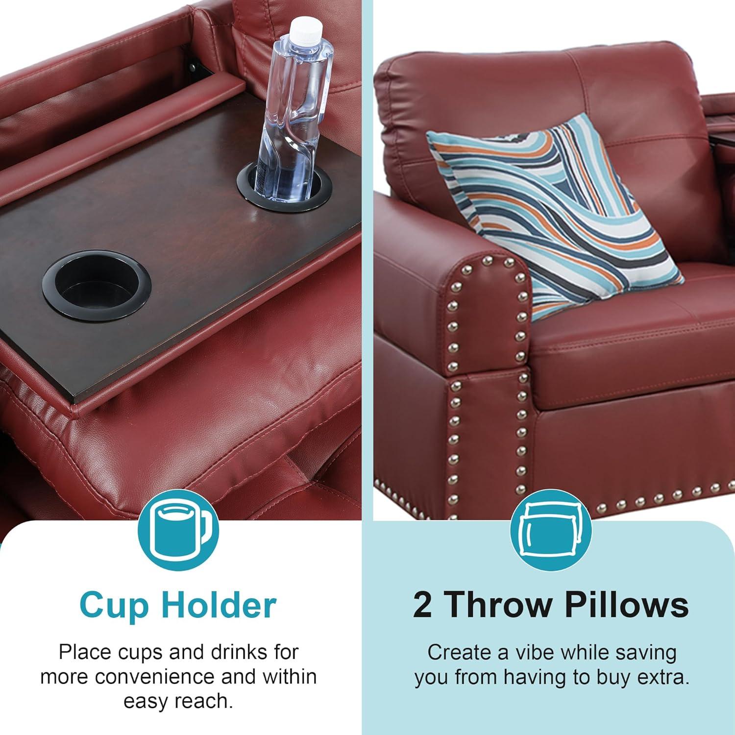 | built-in cup holders add convenience for entertaining or relaxing with drinks. | The bright red color may not suit all decor styles or color palettes. |
