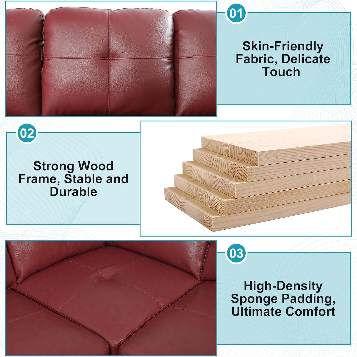 This flexible setup fits a range of personal preferences and room dimensions, making the living space truly our own. The synthetic leather material not only offers a contemporary look in striking red but also provides durability and easy maintenance, which is vital for dynamic homes. The combination of stable wooden framing and high-density padding ensures comfort and longevity, transforming your living area into a customizable haven.