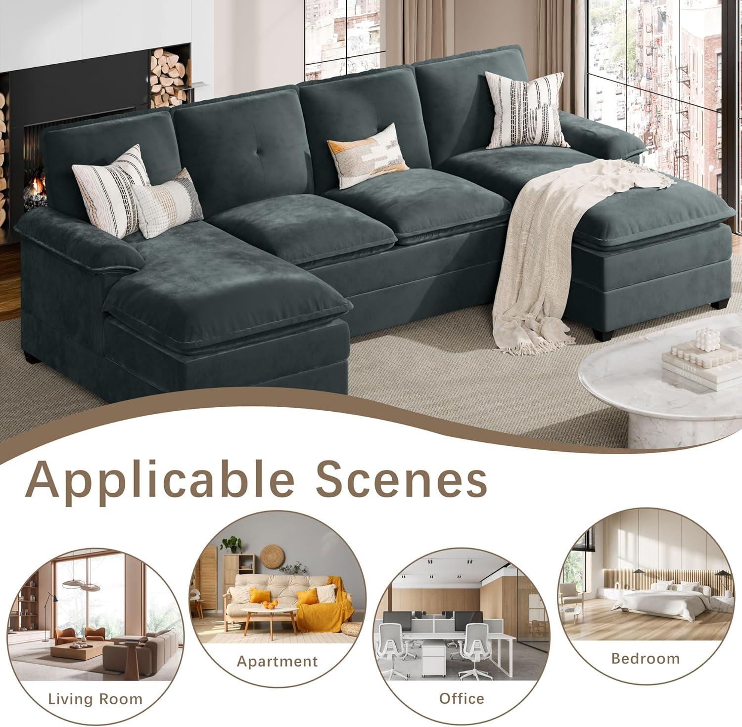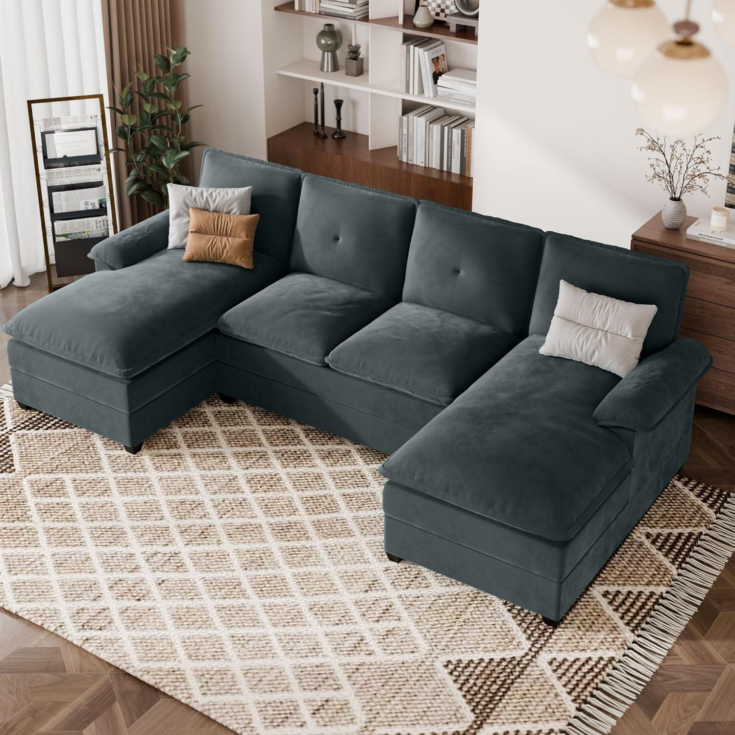 After spending time with this spacious U-shaped sectional, we appreciate how it combines comfort and versatility with a contemporary design that suits apartment living or larger family rooms.The high-resilience memory foam cushions deliver a remarkably soft, cloud-like seating experience, making it ideal for everything from casual lounging to naps. The dual chaise lounges add extra relaxation space, allowing multiple people to unwind simultaneously without feeling cramped. Assembly is straightforward for those patient enough to manage the three-package delivery, though we recommend ensuring all boxes arrive to avoid delays.