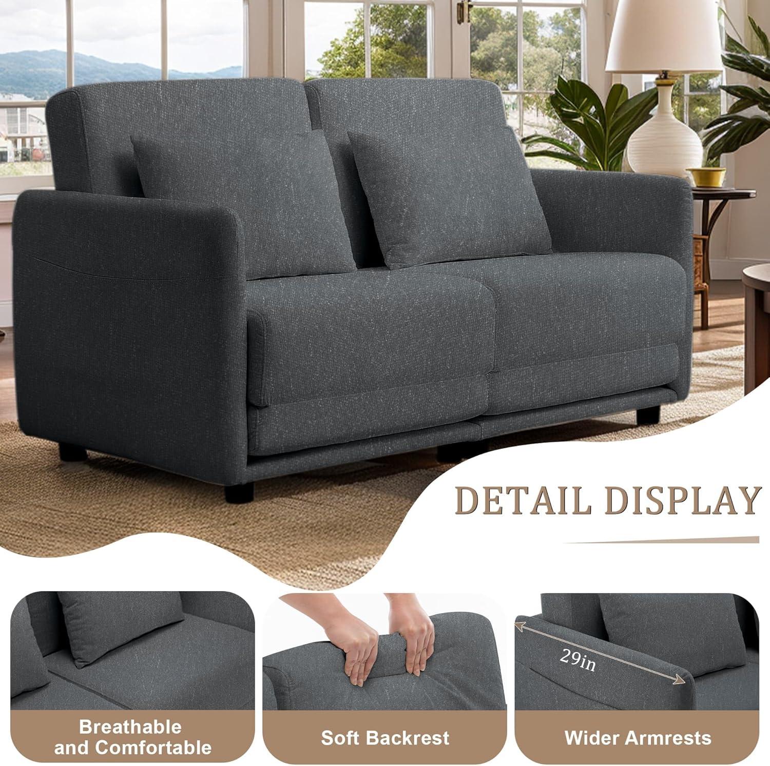 Our experience with this convertible loveseat reveals a thoughtful balance between cozy seating and restful sleeping.The plush 15.7-inch sponge cushion offers exceptionally soft support when sitting, making it ideal for long reading sessions or relaxed lounging. Transitioning to sleep mode, the cushion unfolds into a 7.3-inch soft mattress that feels surprisingly plush compared to traditional sofa beds, enhanced further by two included pillows that cradle the neck perfectly. The natural linen fabric contributes a breathable, moisture-wicking touch that keeps the surface agreeable throughout the day and night, while the firm steel frame ensures steady support nonetheless of how you use it.
