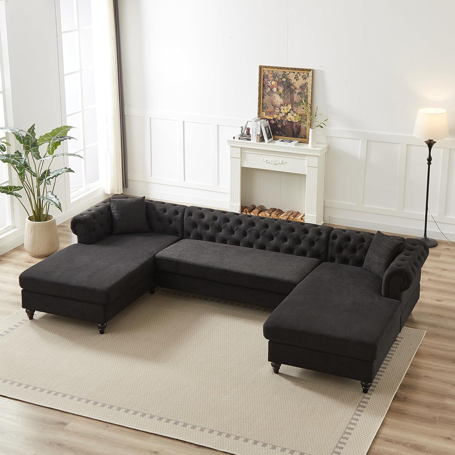 transforming our living space can be a game-changer, and that’s exactly what we experienced with the 135.5 Inches Modern U-shaped Chenille 5-seat Sofa. This black beauty, featuring two chaise longues, plush pillows, and a chic pull-point design, effortlessly combines style and comfort. Crafted with soft chenille fabric and supported by sturdy wooden feet, it quickly became our go-to spot for family gatherings, movie nights, and moments of pure relaxation. Join us as we dive deeper into how this sofa holds up in both form and function.