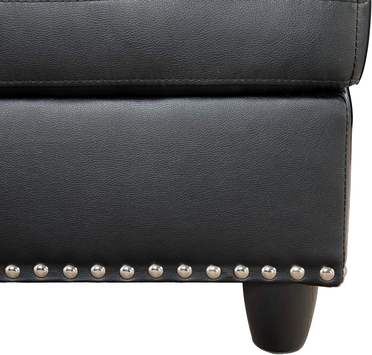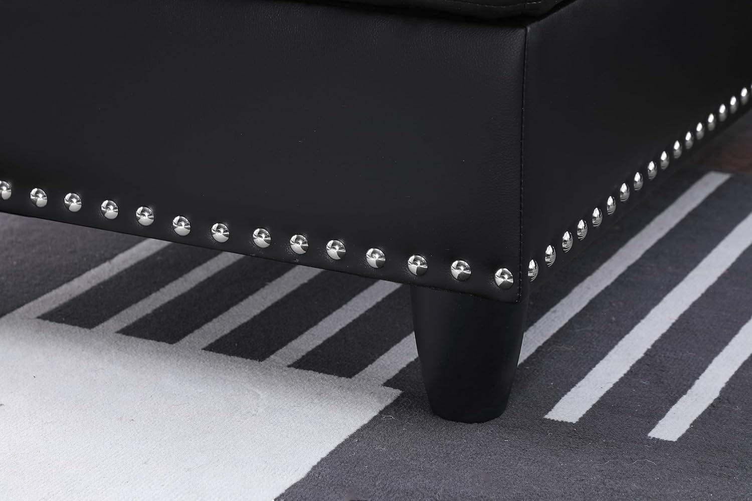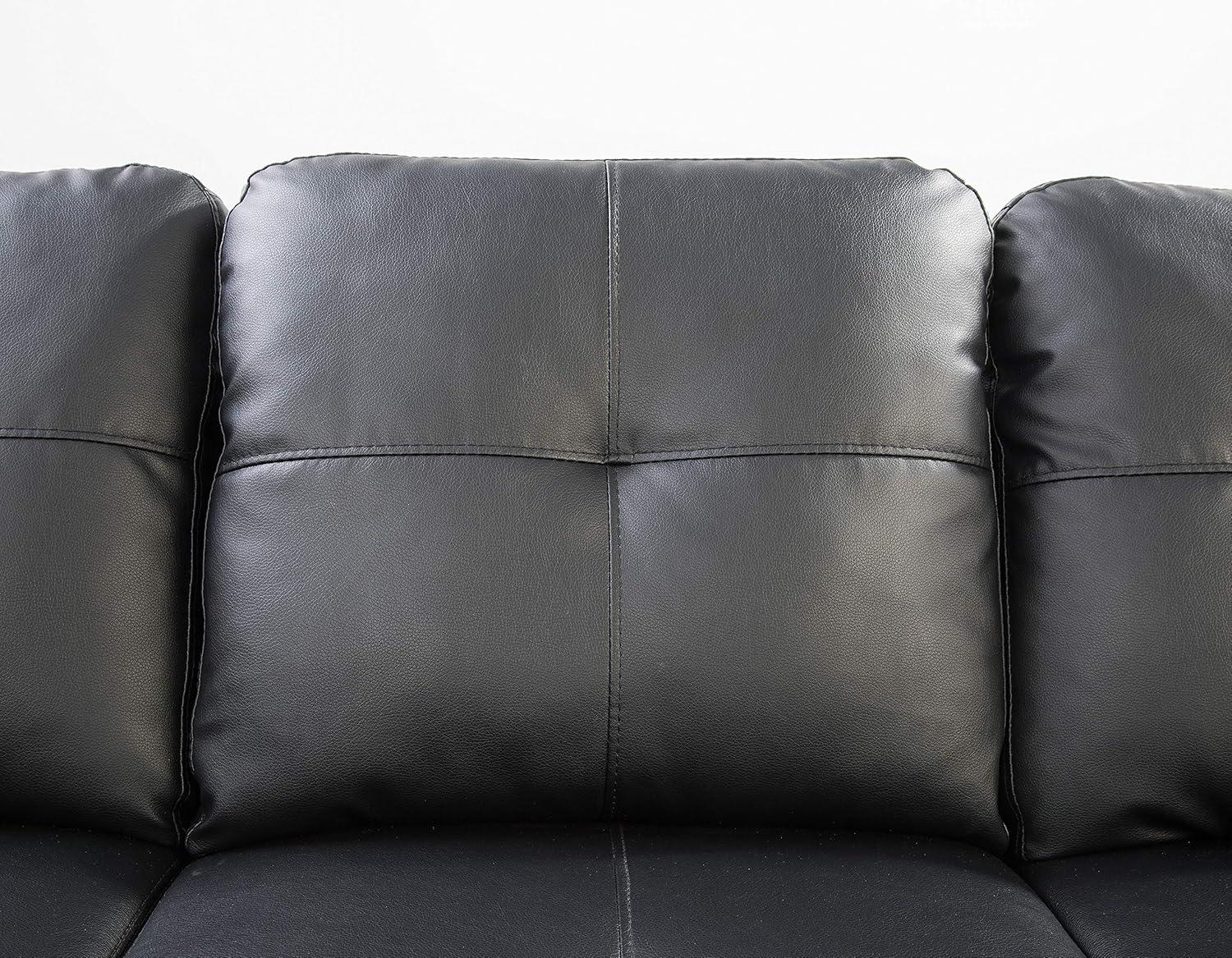 Bringing this versatile sectional into your living space opens up numerous styling possibilities. The neutral faux leather upholstery and classic design with rounded arms and subtle tufting make it easy to pair with both modern and traditional décor. For a cozy living room, enhance the black finish with warm-toned throw blankets and vibrant cushions that complement the included toss pillows. The built-in storage in the ottoman is perfect for stashing extra throws or magazines, helping maintain an uncluttered, inviting atmosphere. We love positioning the ottoman centrally or slightly angled to encourage conversation and provide extra seating or a footrest.