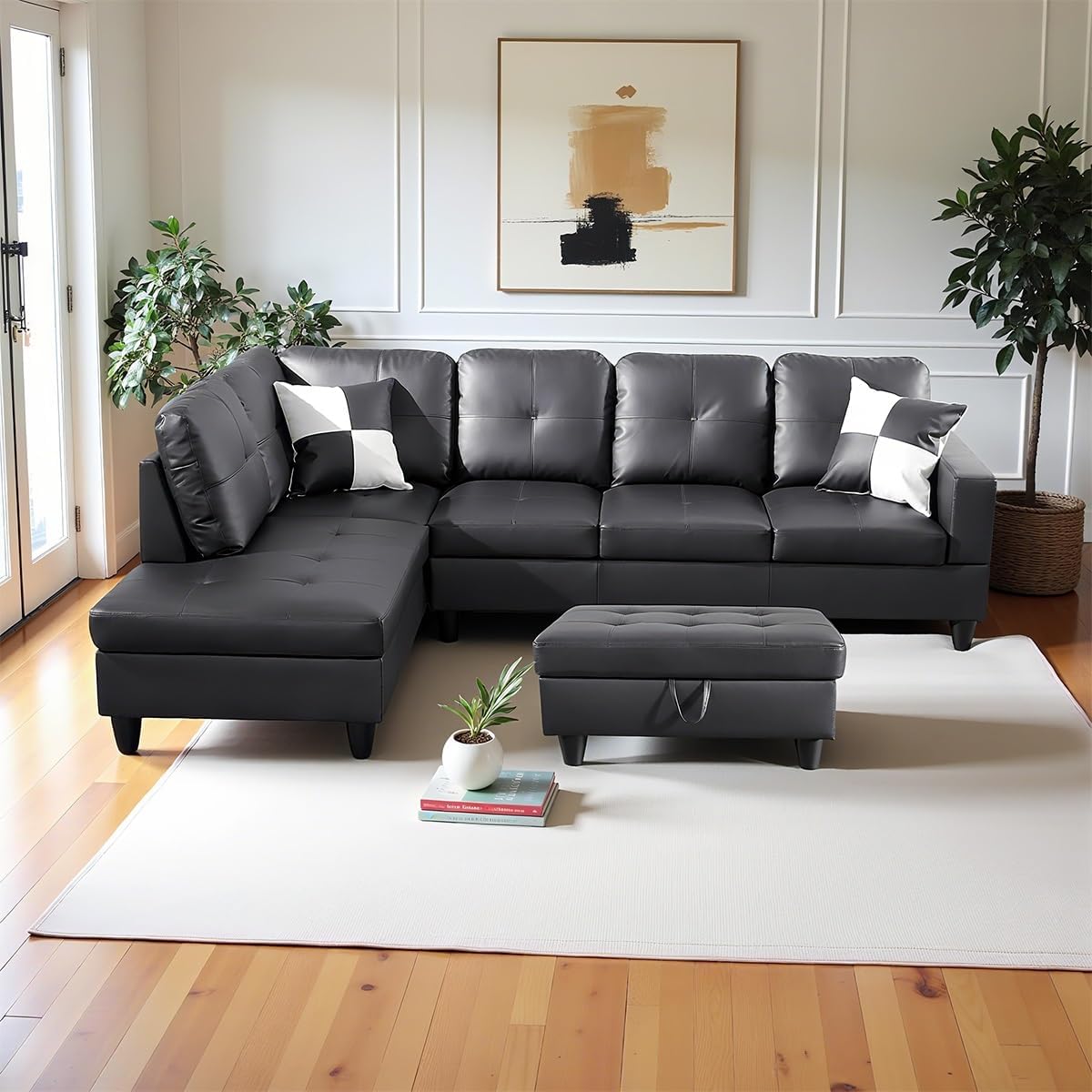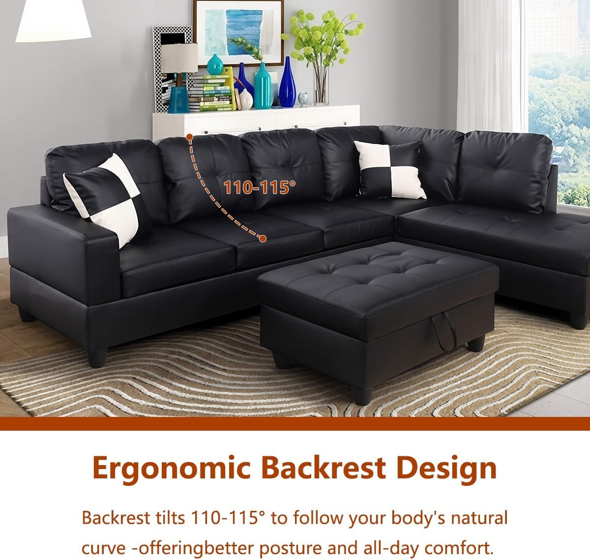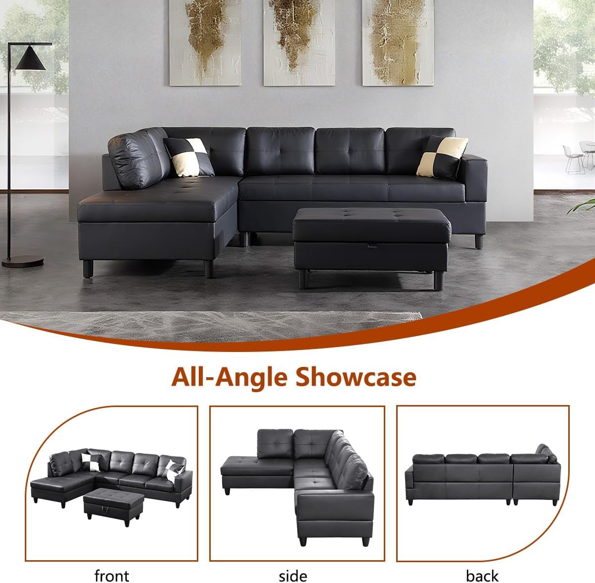 After spending a good amount of time with this sectional sofa,we appreciate how it blends modern design with practicality. The semi PU leather upholstery feels both smooth and durable, and the solid wood frame ensures reliable sturdiness.Sitting on it, the high-density elastic sponge cushions provide comfortable support without feeling too soft or too firm. We also found the chaise lounge especially versatile-it adapts effortlessly whether for lounging solo or accommodating guests. The storage ottoman is a clever addition, offering hidden space for throws or magazines while doubling as extra seating or a footrest. Assembly was straightforward thanks to the detailed instructions, making the entire process hassle-free.