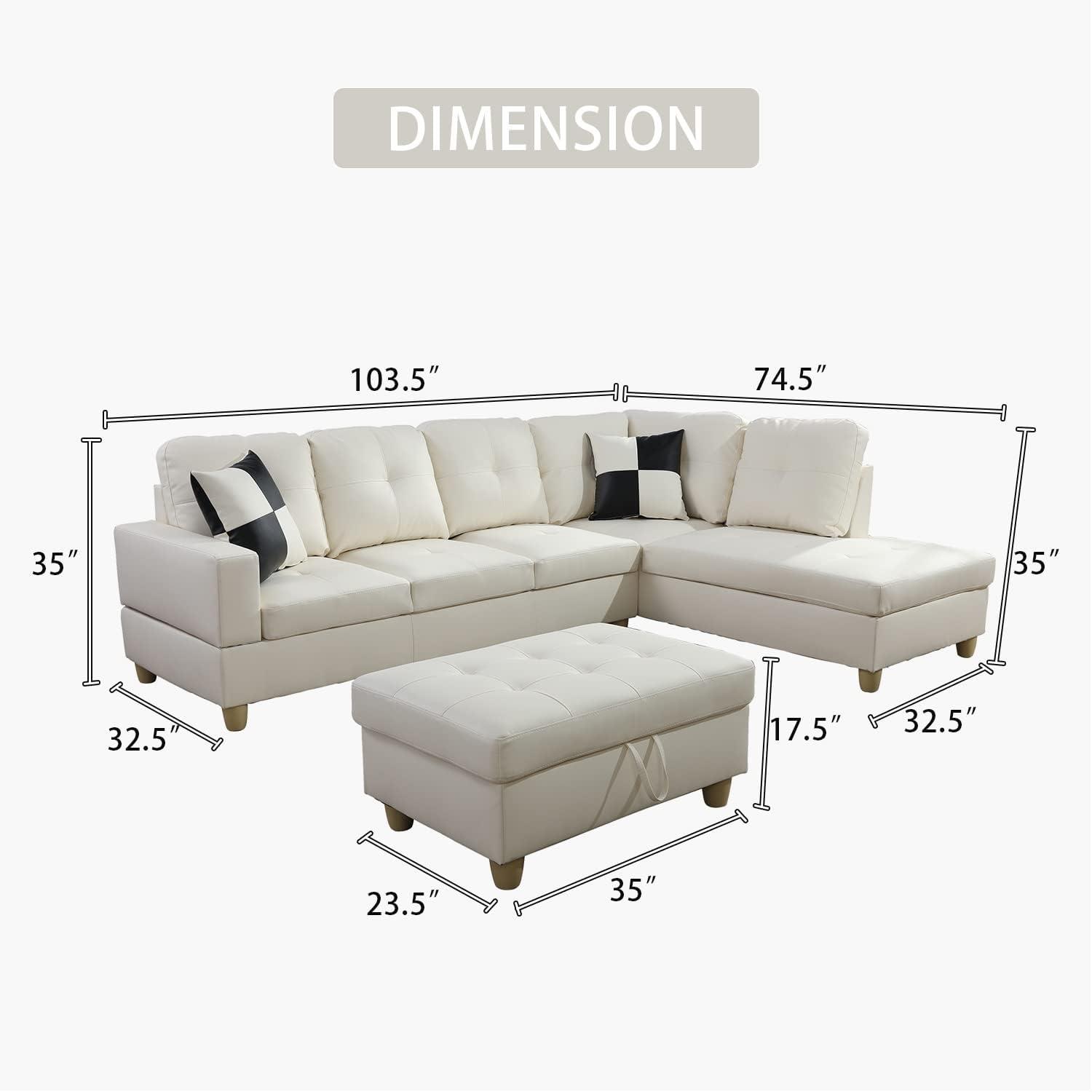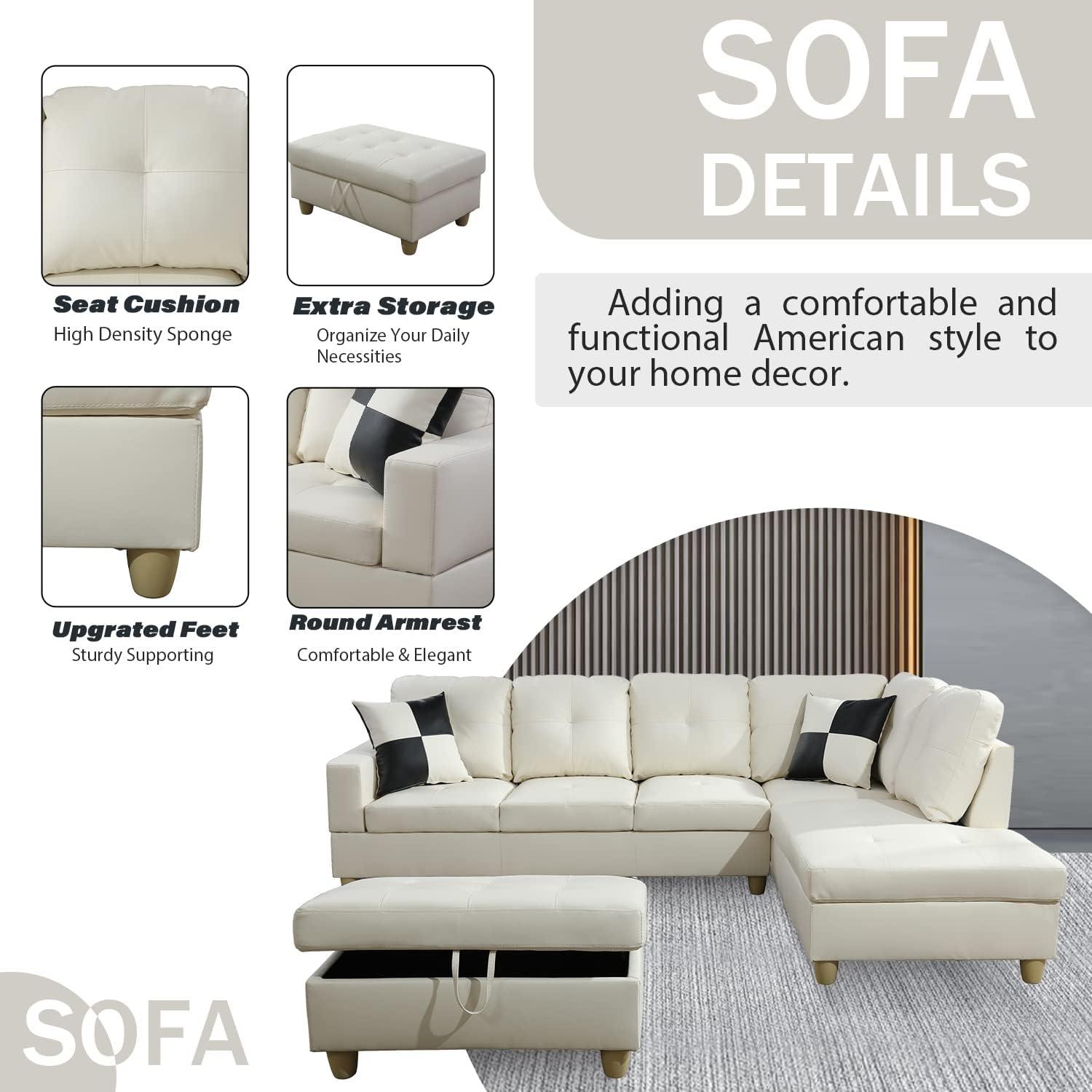 Upon unpacking the set, our immediate impression was its modern appeal, thanks to the sleek white faux leather finish that brightens any living space. The L-shaped design with the right-hand facing configuration fits well into corners, optimizing room layout without overwhelming the area. One standout feature is the storage ottoman,which complements the sofa’s function by offering a discreet space to store blankets,magazines,or kids’ toys,helping maintain a tidy environment.Despite the overall weight of approximately 220 lbs, the pieces feel sturdy yet comfortable, inviting us to relax and unwind.