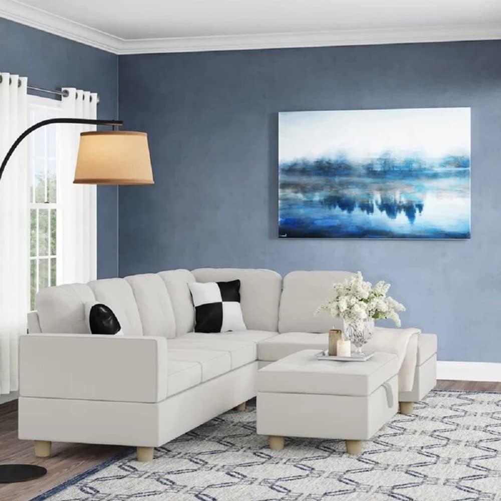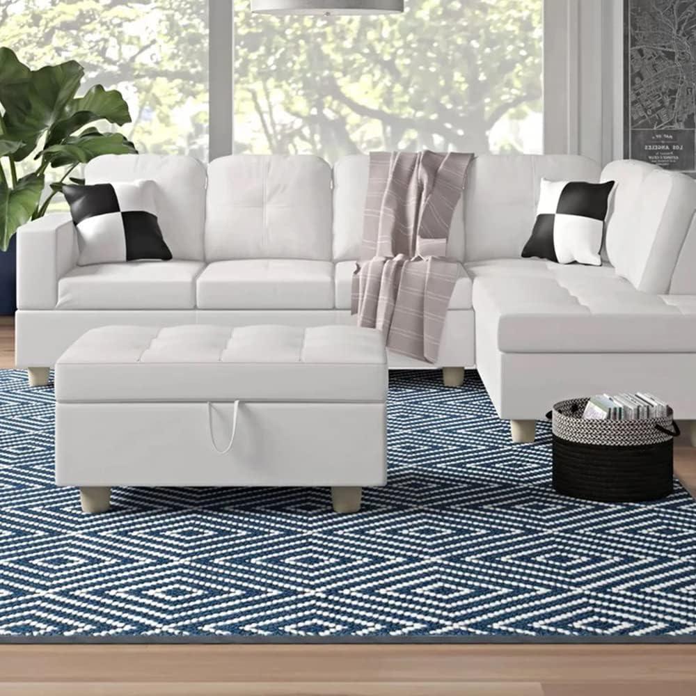 Spacious White L-Shape Sectional Sofa Set with Storage Ottoman