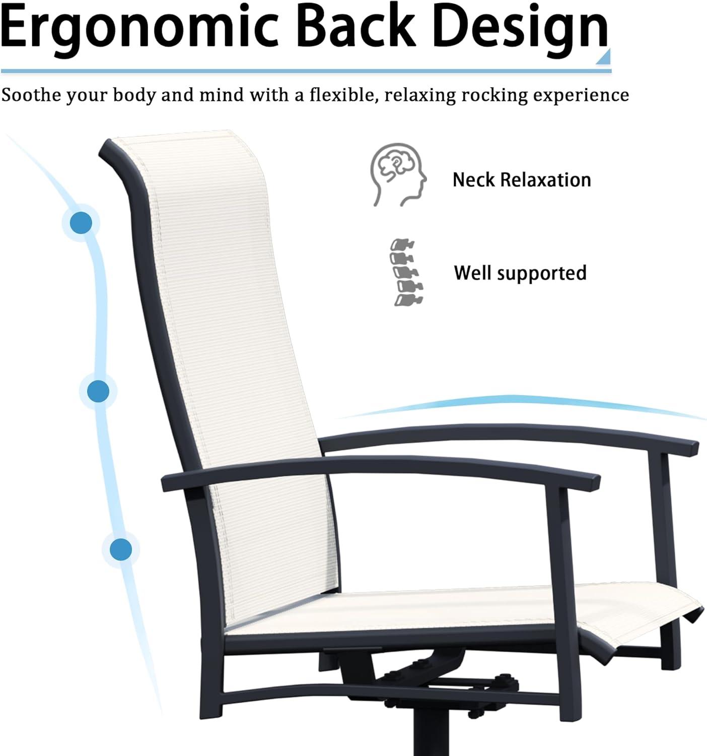 When it comes to longevity, the sturdy metal frame coupled with premium finishes promises reliable support and resistance to the elements. Provided that the chairs are assembled carefully following the instructions and kept on a stable surface, we feel confident that they’ll serve well for seasons to come. We recommend regular checks for any signs of wear or instability to maintain safety,especially if the swivel and rocking features are frequently used.