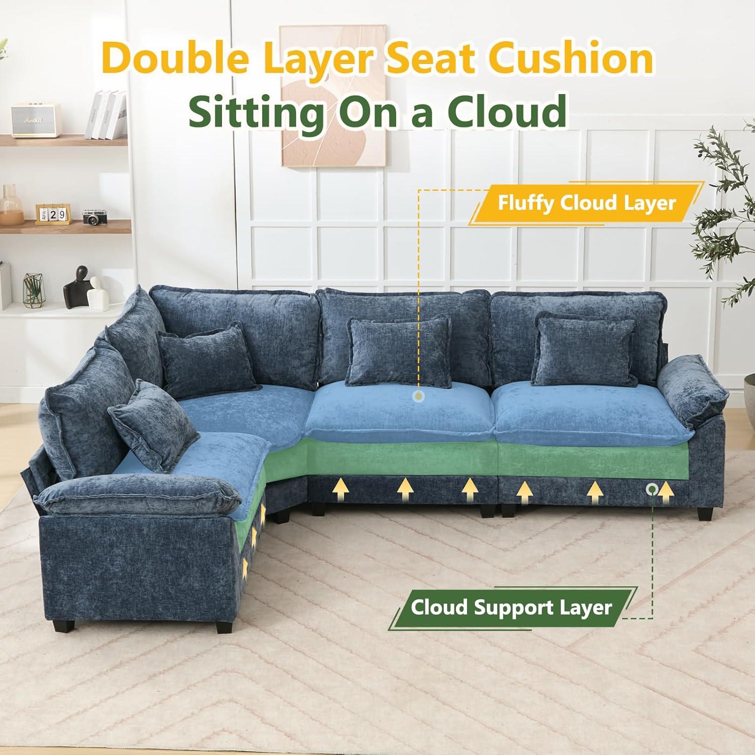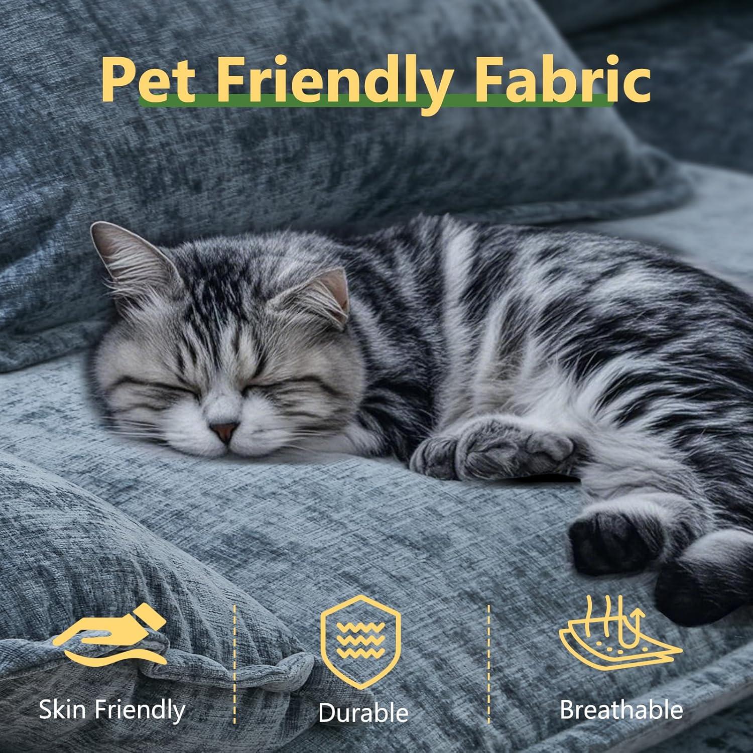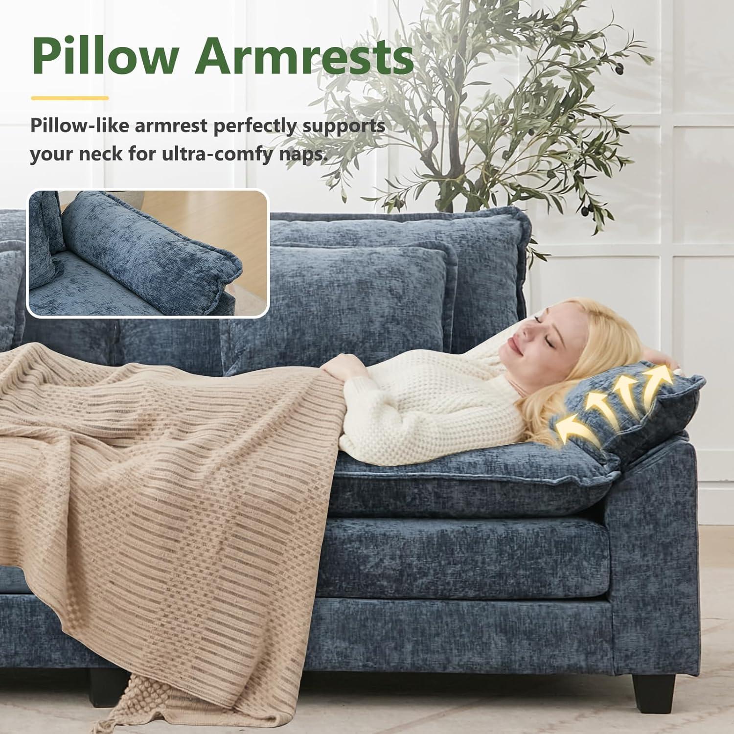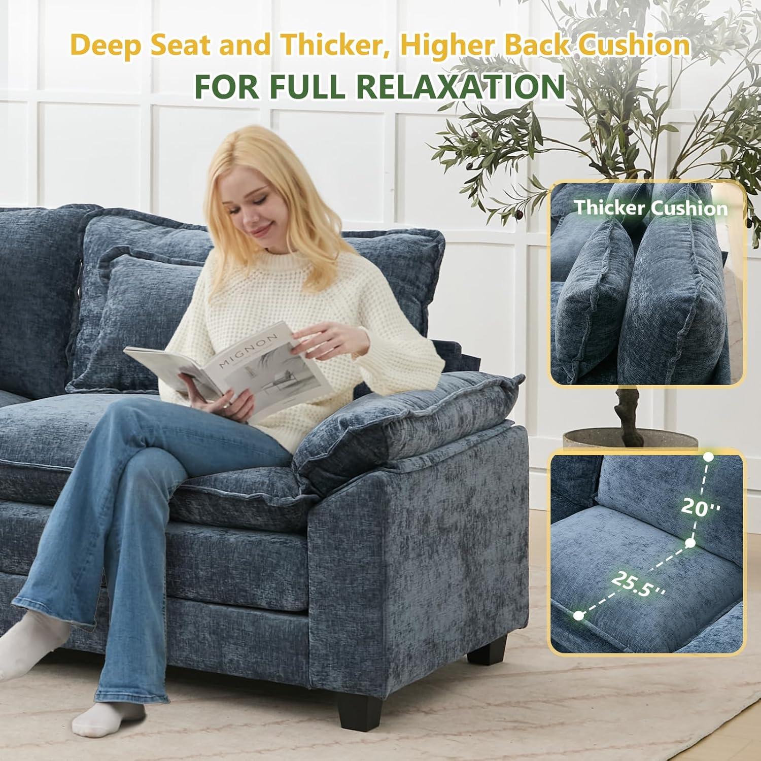 When we first experienced this sectional, the comfort was immediately noticeable. The oversized, deep seats envelop us in softness thanks to the 11-inch thick double-layer cushions filled with high-resilience foam and fluffy padding, creating a sensation much like sitting on a cloud. The pillow-like armrests provide gentle neck and shoulder support, making it ideal for lounging or even a quick, cozy nap. The breathable, premium chenille upholstery adds a touch of luxury while remaining skin-friendly, ensuring we stay comfortable during extended use without feeling overheated.