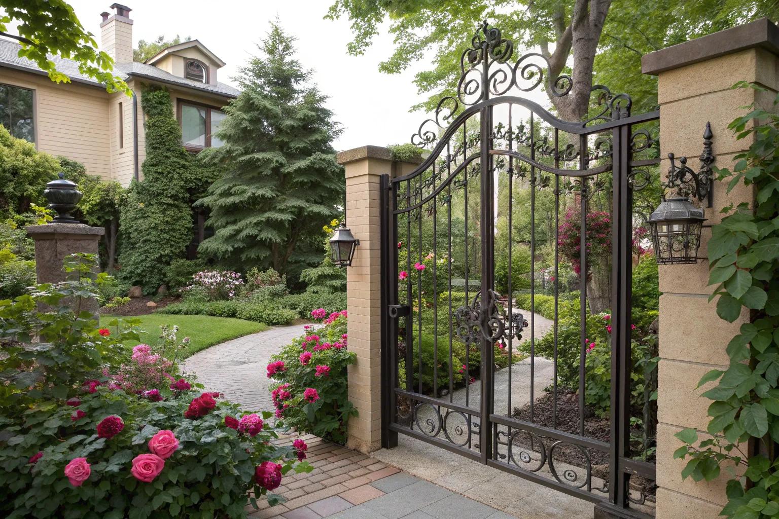 • : Enhance your gate with a metal arch designed to support decorative vines, integrating natural charm.
