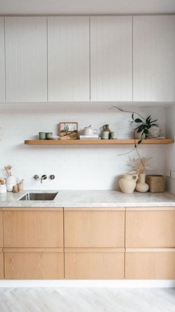 Blend open shelving with traditional closed cabinets to balance display and concealment. This approach is perfect for showcasing select kitchenware and artwork while keeping clutter hidden away.