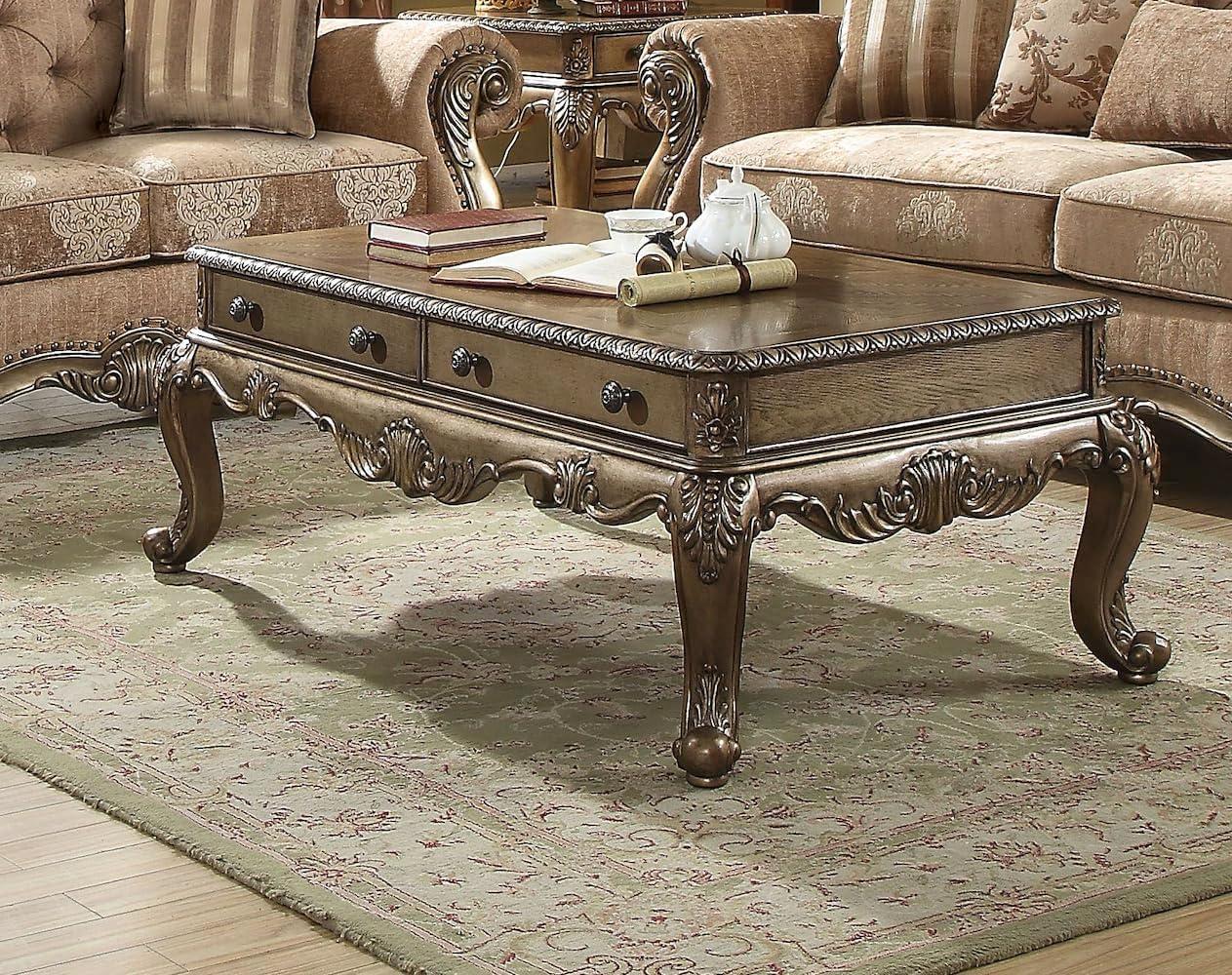 | Coffee Table | Wood, Poly Resin, Veneer, Composite Wood | Dovetail Drawers, Cabriole Legs, Scrolled Apron | 95 lbs |