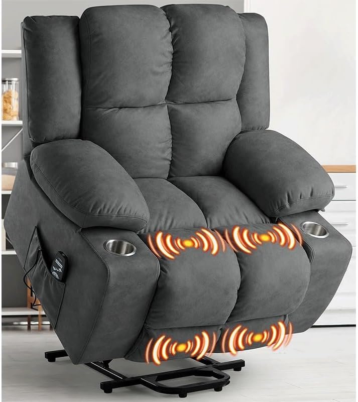 this generously sized lift recliner offers exceptional comfort, featuring a large 22.8″ by 22.8″ seat that provides ample space for sitting or standing with ease. Designed specifically for seniors, it incorporates a powerful lift mechanism controlled by a user-friendly remote, allowing smooth transitions between sitting, reclining, and rising positions. Plush cushions wrap around your back, seat, and armrests, delivering ergonomic support while the integrated 8-point massage system combined with warming heat therapy adds soothing relaxation. Additional touches such as built-in cup holders and USB ports make it ideal for use in living rooms or home theaters, keeping essentials close at hand and devices charged.