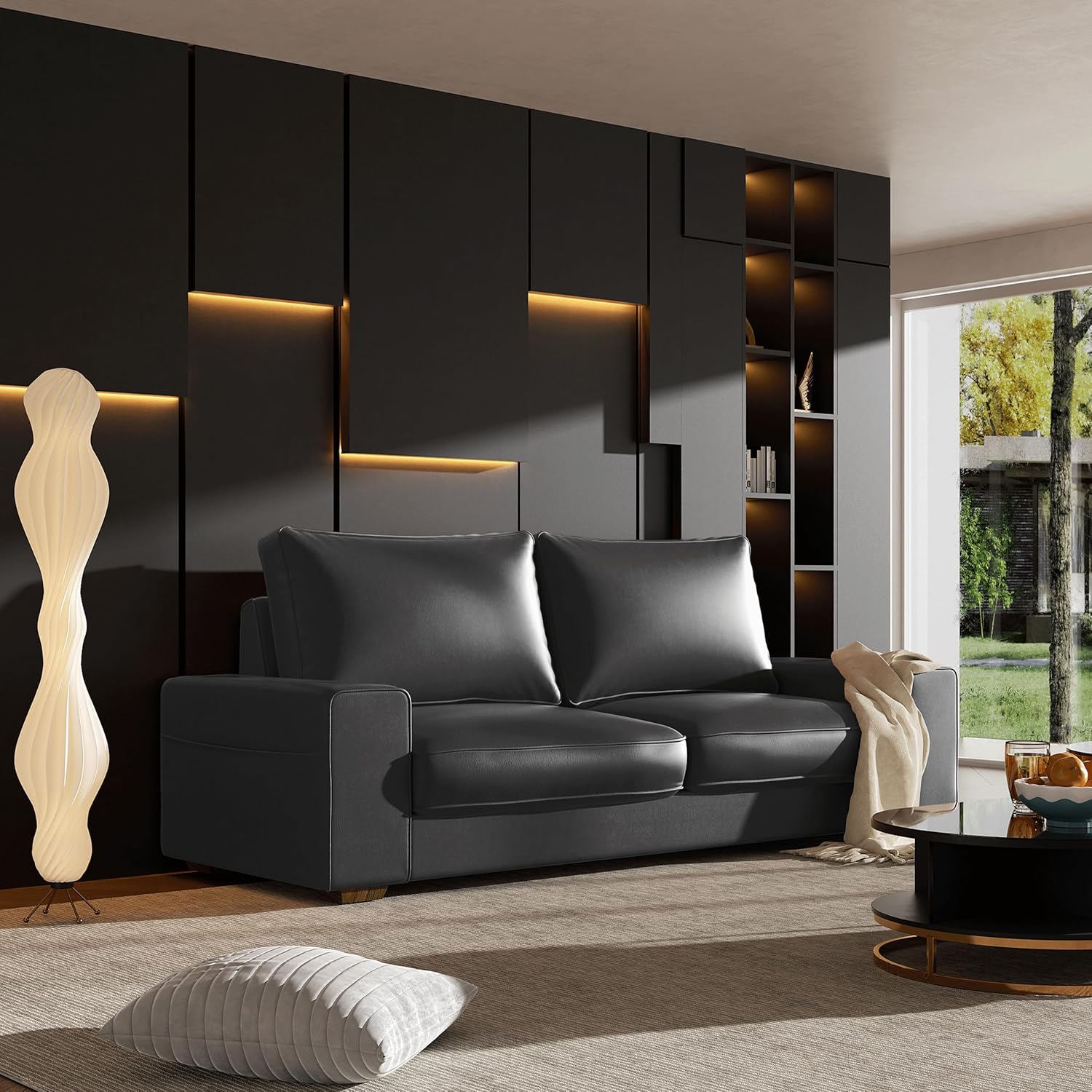 stability and durability are enhanced with a solid wooden base and legs, supported by thickened metal bars underneath to prevent wobbling or sagging over time. One convenient feature is the replaceable seat cushions, which can be rotated to minimize uneven wear or swapped out entirely without needing to replace the whole sofa set, making this a smart long-term investment. While the faux leather surface is simple to clean and maintain,keep in mind that this couch should be kept away from open flames or extreme heat sources to ensure lasting quality. Its customizable,modular design,combined with practical storage and sturdy craftsmanship,make it an excellent option for both small apartments and larger family rooms.
