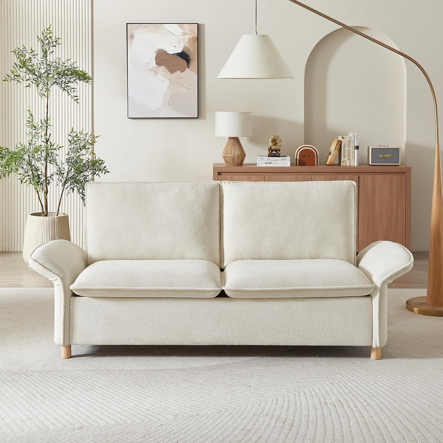 ONBRILL 78″ Cream White Modern Loveseat Sofa, 2 Seater, Boucle Fabric, Wood Frame, Adjustable Armrest, 20.4″ Deep Comfort Seating, 900 lbs Weight Capacity