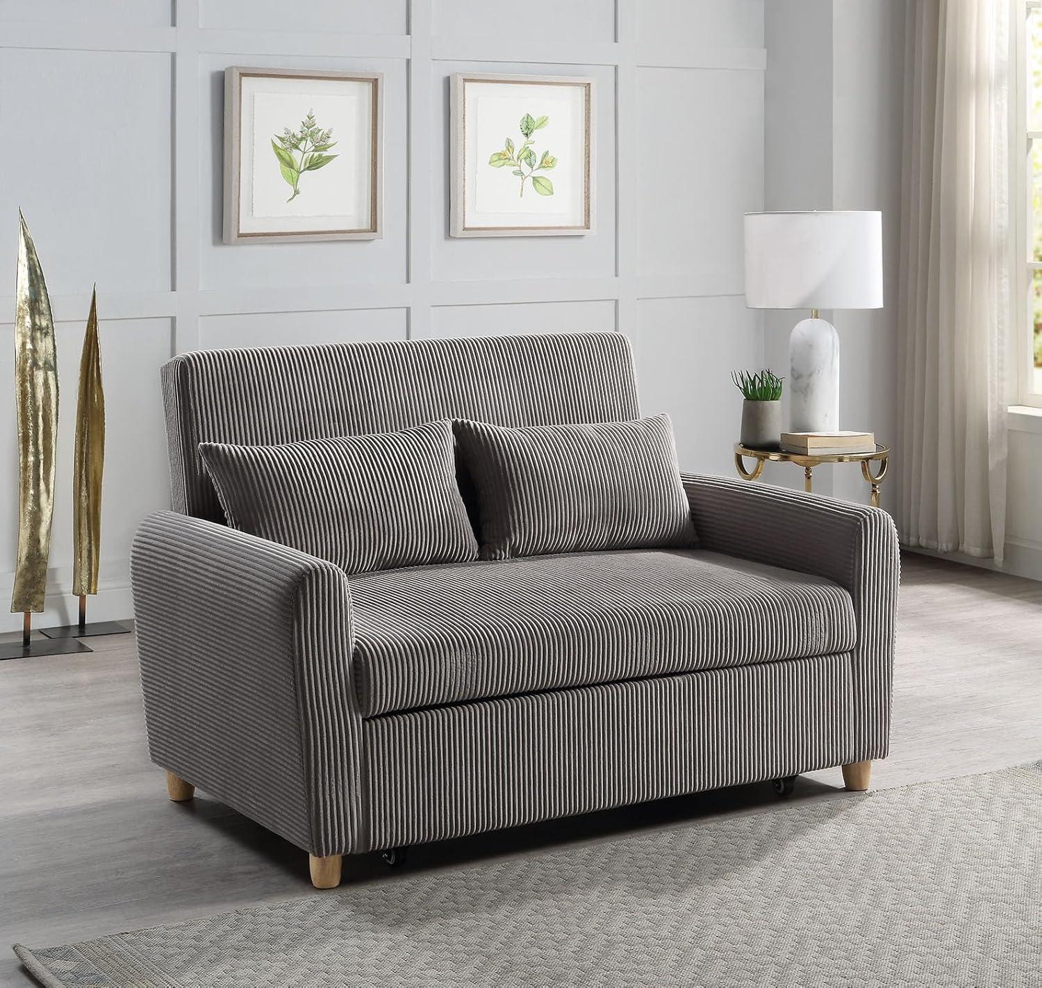 Compact Convertible Sleeper Loveseat with Plush Corduroy Finish and throw Pillows