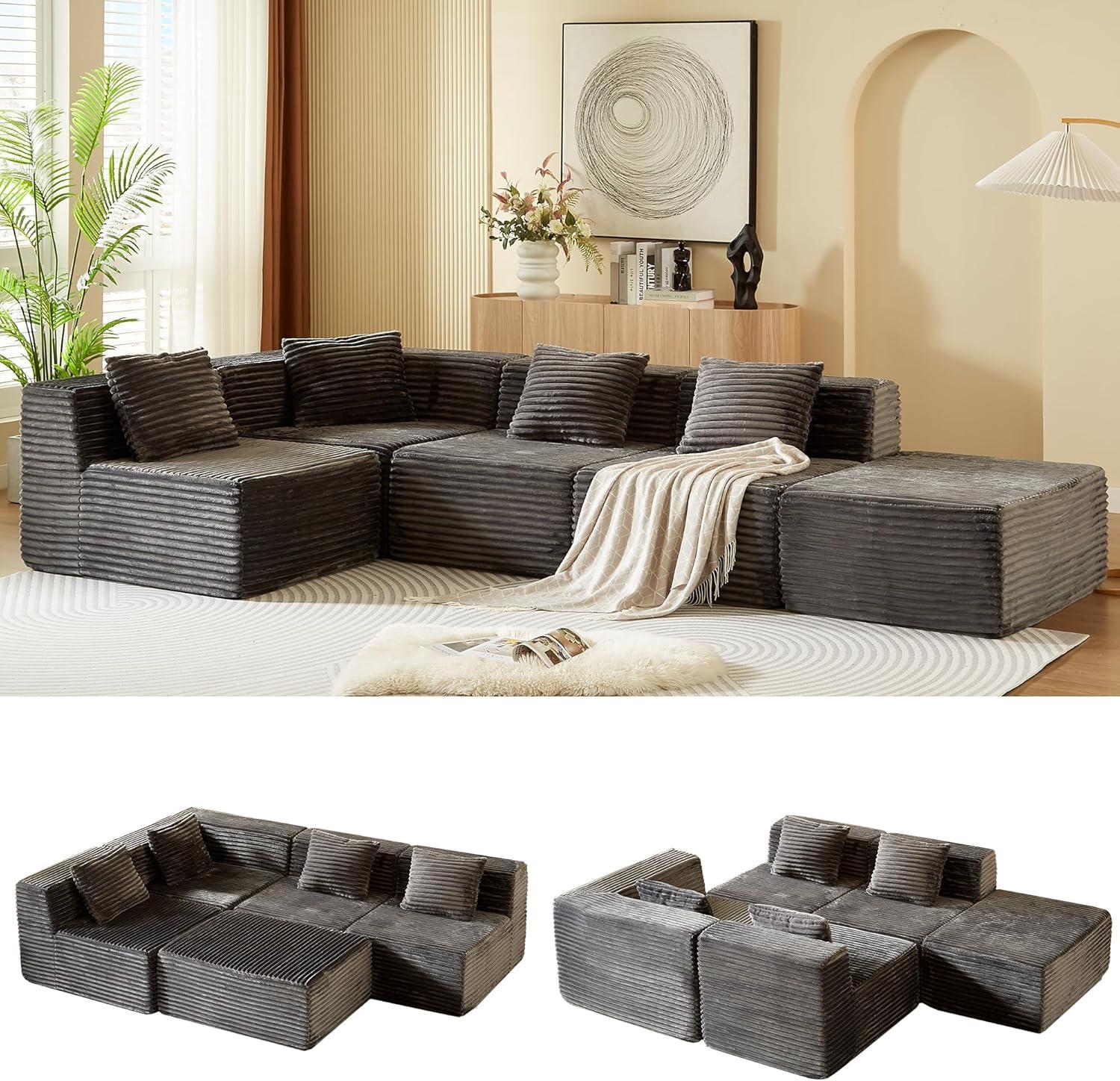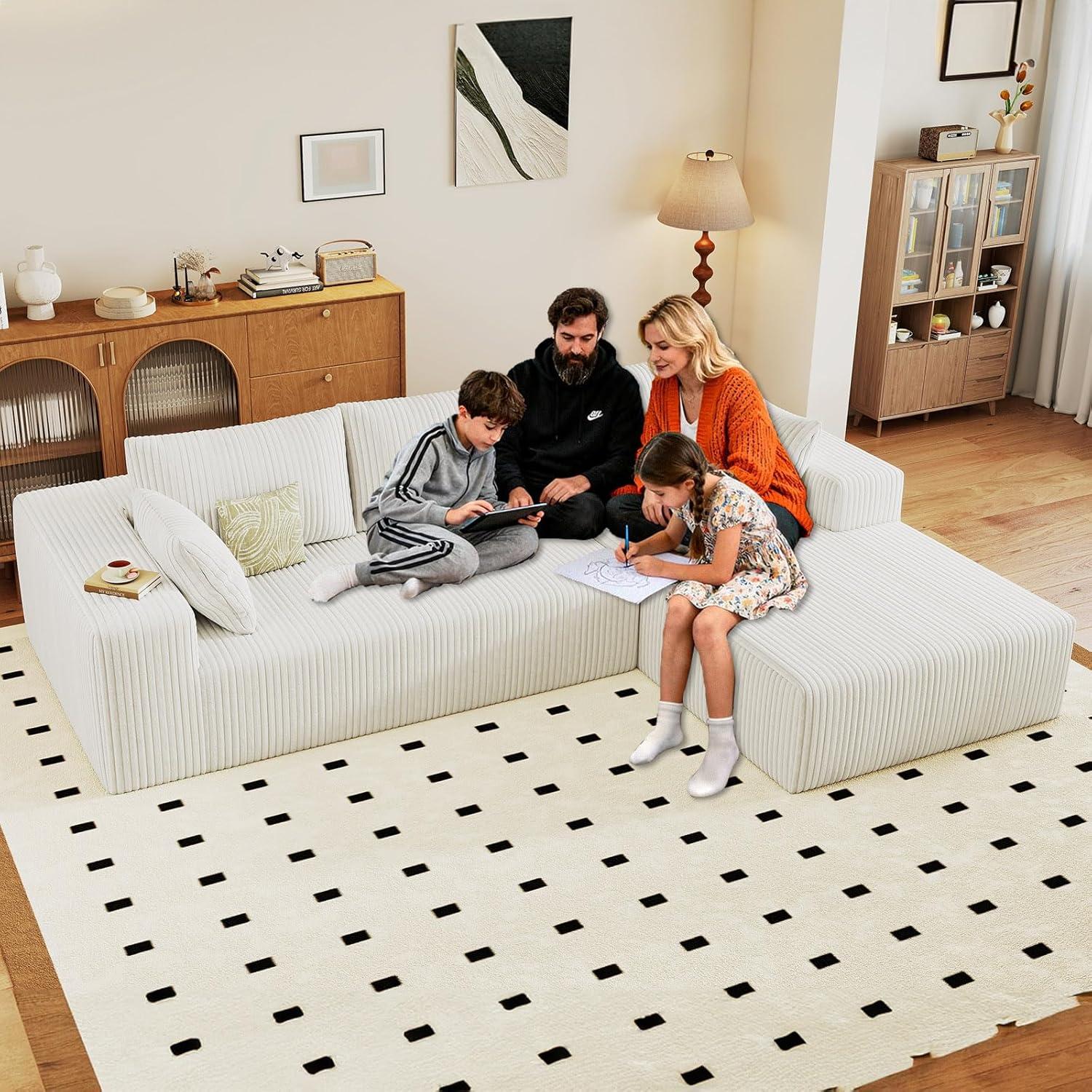 Modular Sectional Couches for Living Room with Deep Seat,L-Shape Cloud Sofa,Boneless Upholstered High Density Memory Foam Corduroy Couches,Easy Assembly