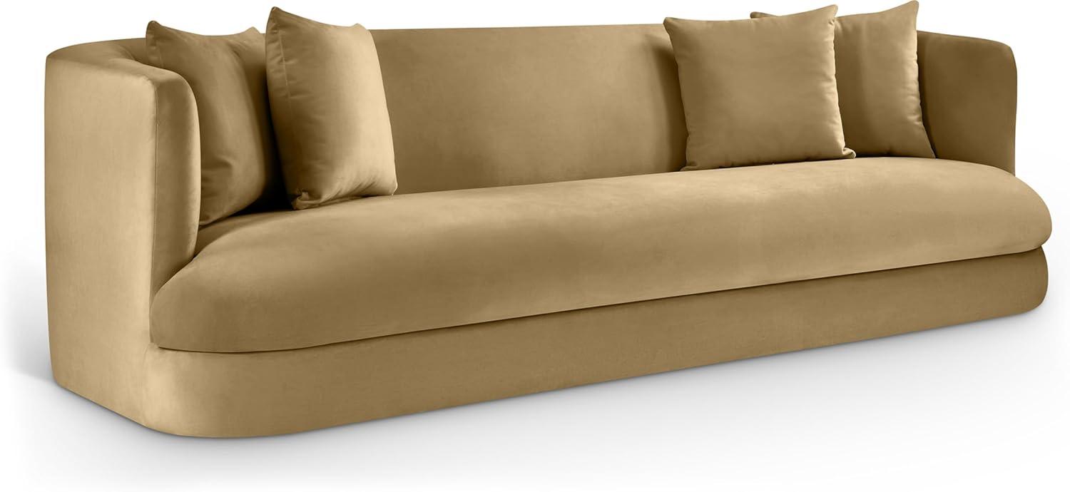 Designed to bring a cozy, inviting ambiance to your living area, this sofa’s soft velvet surface combined with sturdy wood construction makes it ideal for both relaxation and stylish entertaining. The camel color enriches any room, introducing warmth and sophistication without overwhelming your existing décor. Its generous size allows for plenty of space to stretch out comfortably, making it a perfect centerpiece for lounge areas.