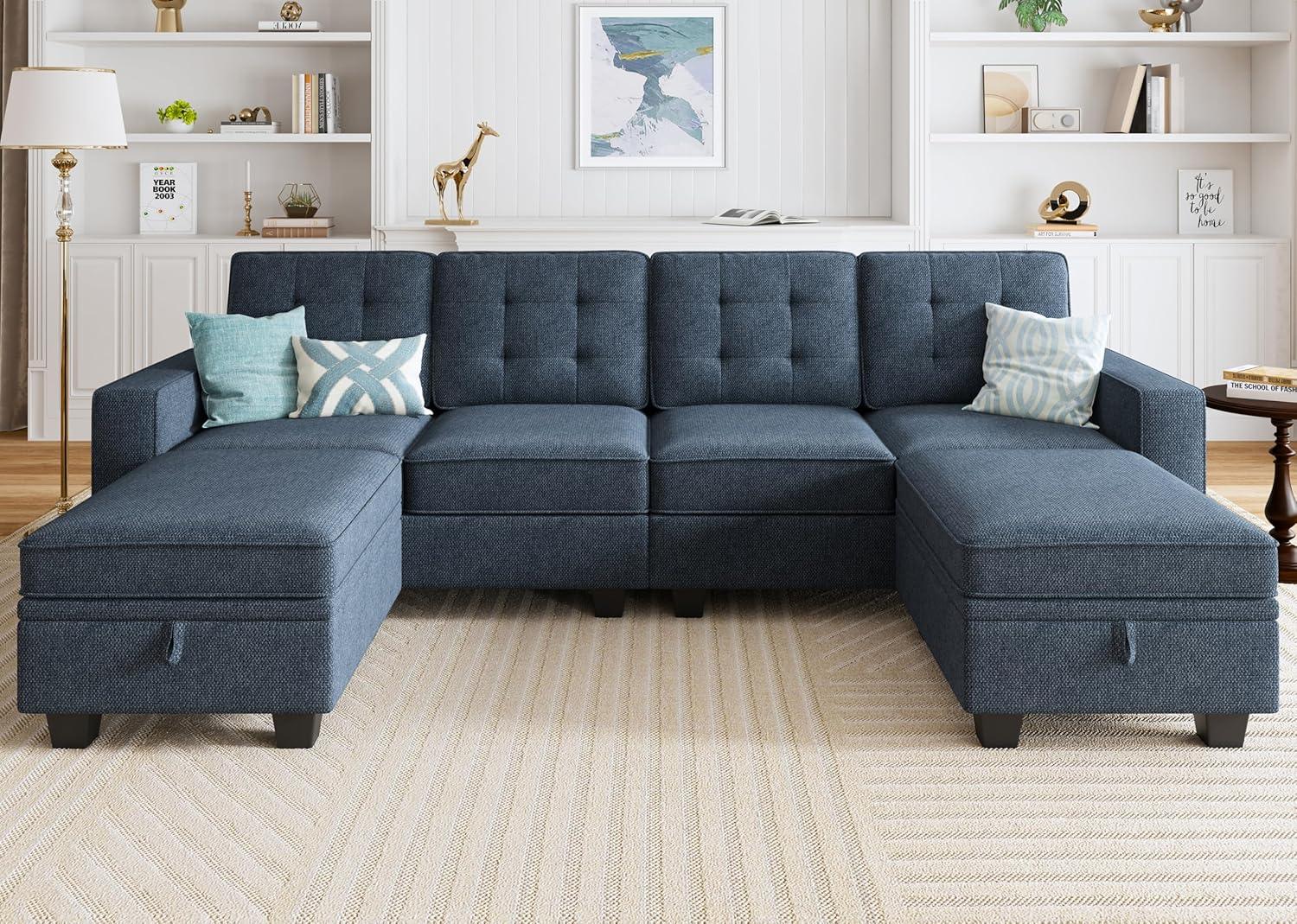 This modular sofa offers outstanding versatility,allowing you to effortlessly shape it into a cozy U-shaped,L-shaped,or sleeper couch to suit your space and needs. Each seat doubles as a storage compartment, helping keep your living area neat and organized with approximately 22.8″ x 22.8″ x 7.5″ hidden storage per cushion. The faux leather upholstery combines elegance with practicality – easy to wipe clean while complementing a variety of décor styles. Designed with comfort in mind,the seats are generously wide at 26.8″, and the armrests have been thoughtfully widened for added coziness. High resilience foam and premium springs provide a plush seating experience,while cushions are secured with Velcro strips to prevent slipping during use.