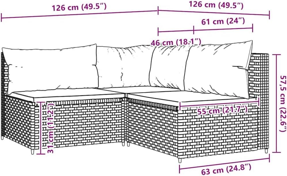 | Dimensions | Corner & Middle sofas approx. 25″x25″ | Compact yet spacious seating |