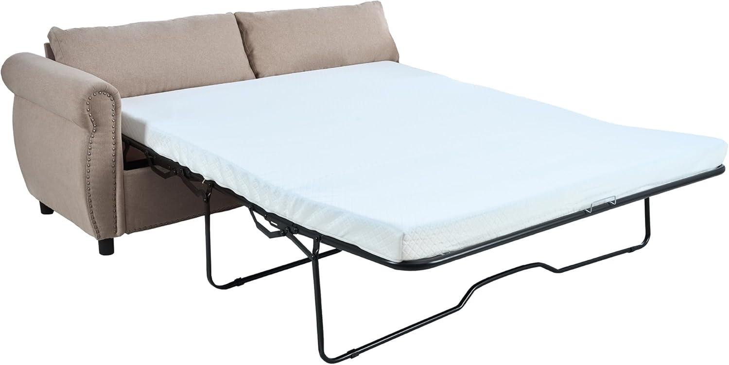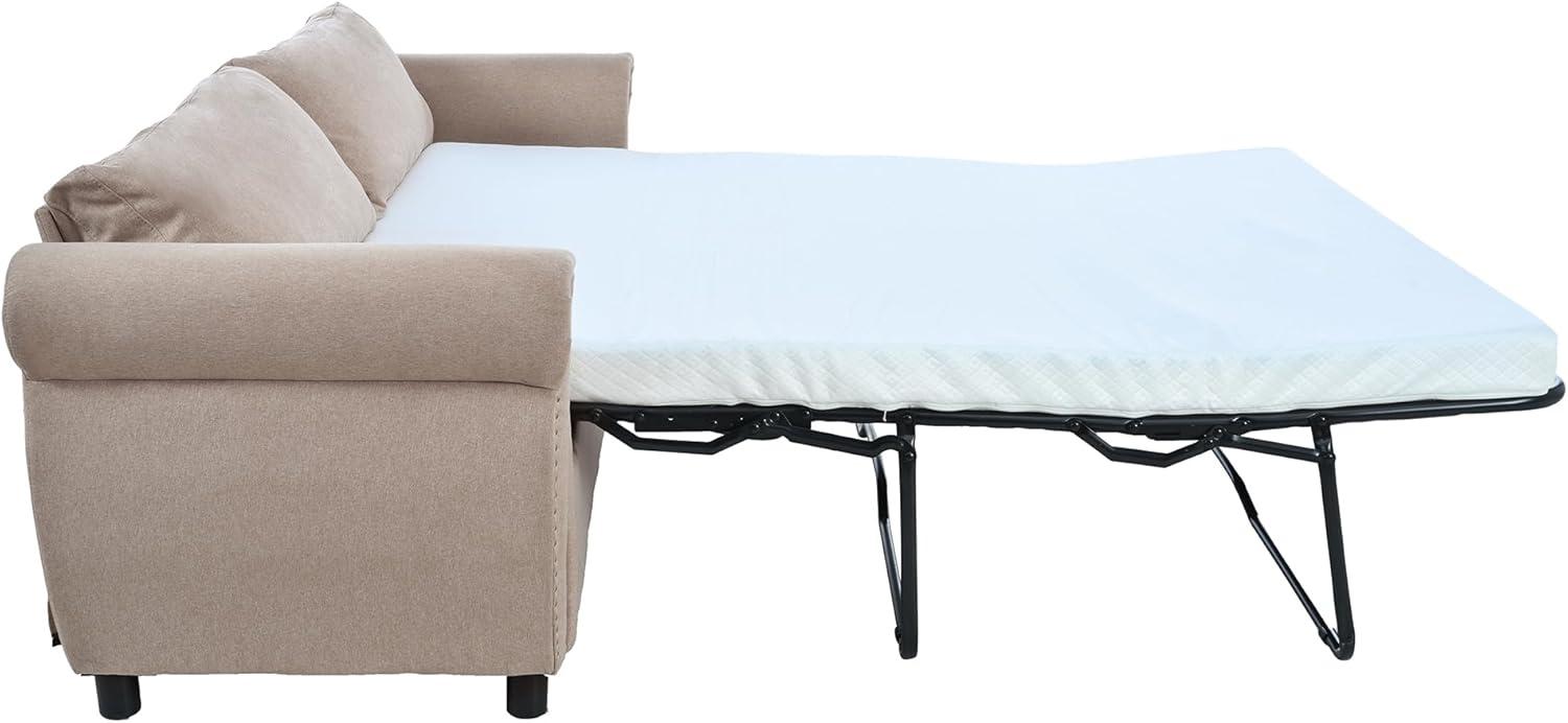 The mattress included with this convertible sofa bed strikes a thoughtful balance between comfort and practicality. measuring a generous 60”W × 70.9”L × 3.3” thick, it provides sufficient space for two adults to comfortably rest without feeling cramped. Crafted with foam that sits atop a sturdy wooden frame, the mattress offers consistent support that prevents sagging over time. While it’s not as thick as some dedicated mattresses, its cushioning is firm enough to ensure a restful night’s sleep and soft enough to avoid discomfort, making it ideal for occasional use or guests.