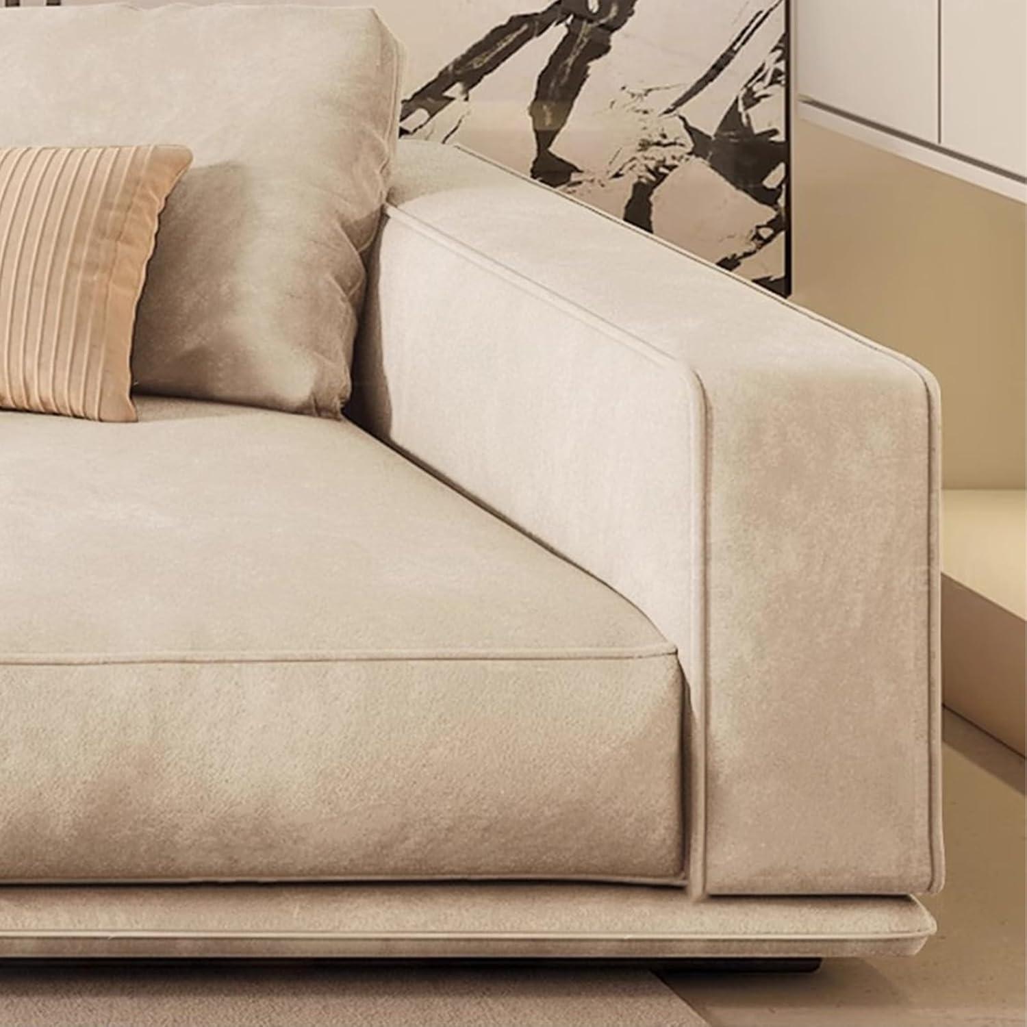 The upholstery further elevates the experience with its cloud-like corduroy fabric. This choice not only gives the sofa a cozy, inviting aura but also adds a subtle layer of sophistication through its minimalist yet timeless texture. Beyond aesthetics, the fabric is surprisingly plush and smooth to the touch, offering warmth without sacrificing durability. Below, we highlight the key upholstery features and comfort benefits we observed: